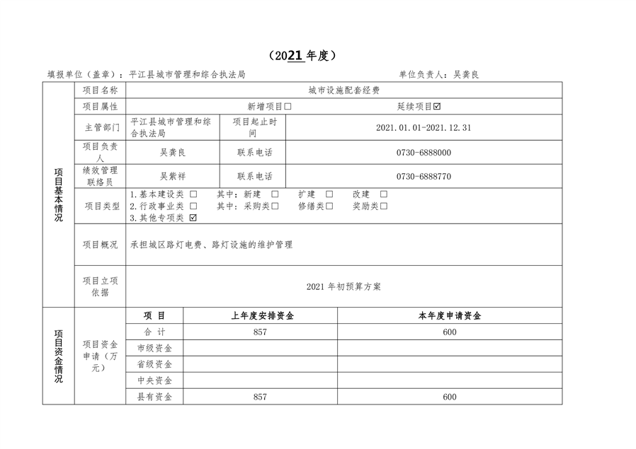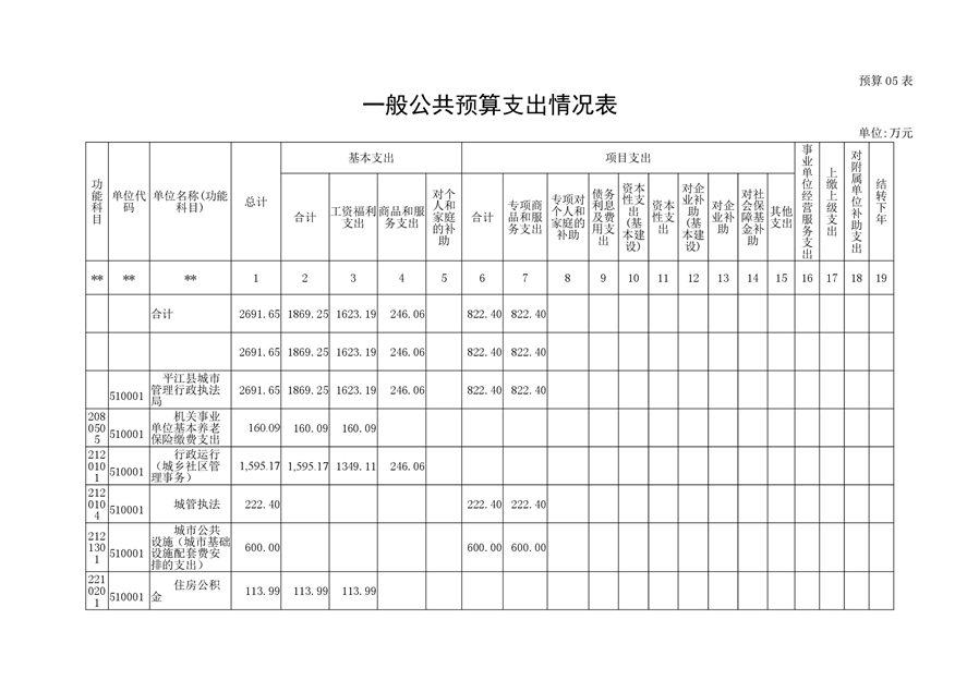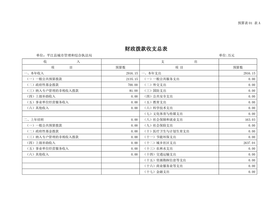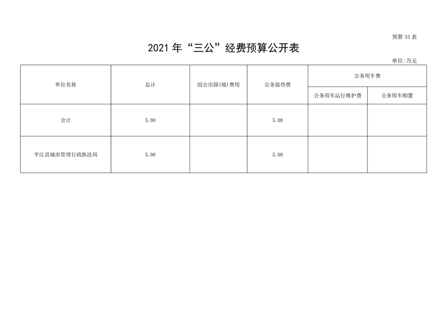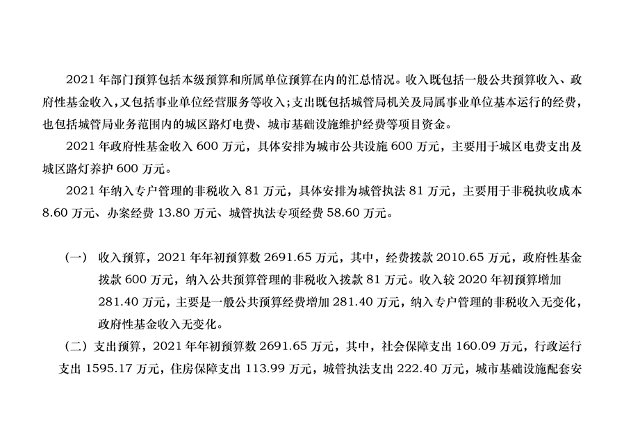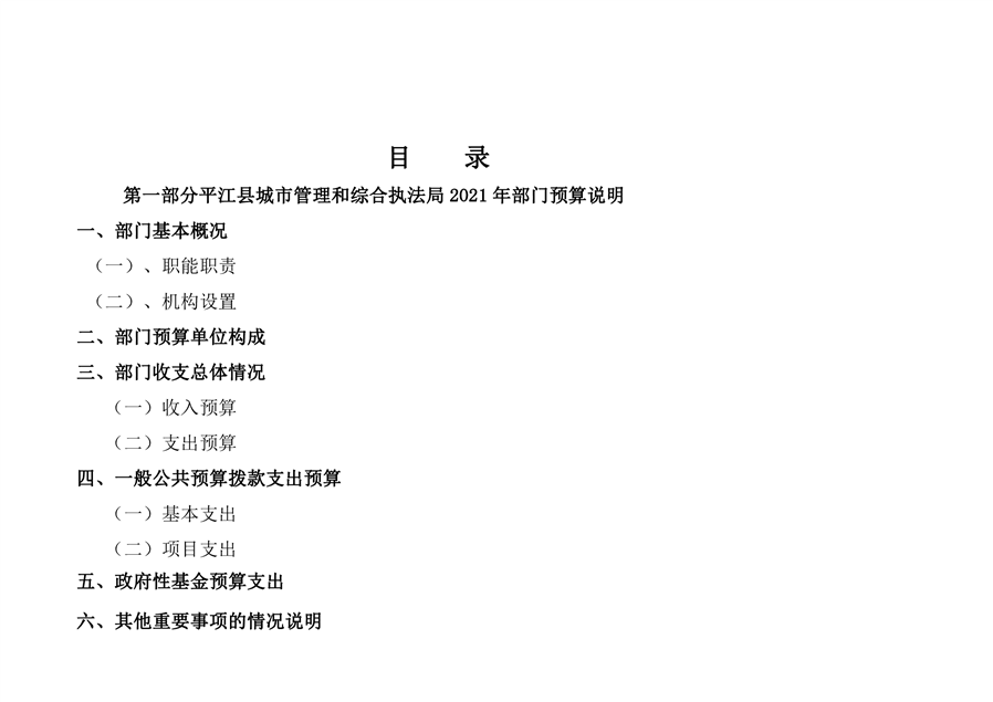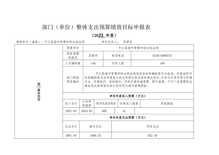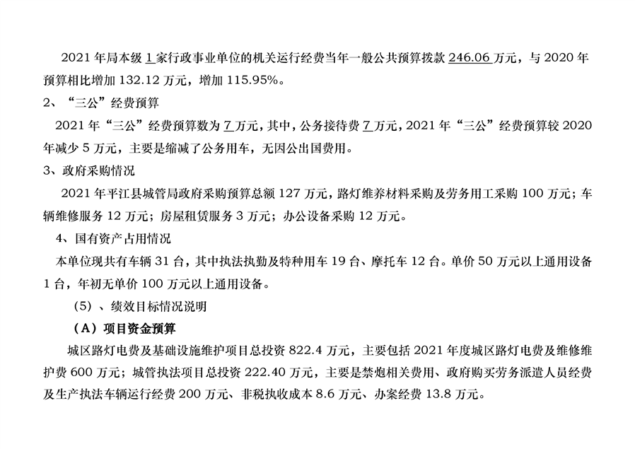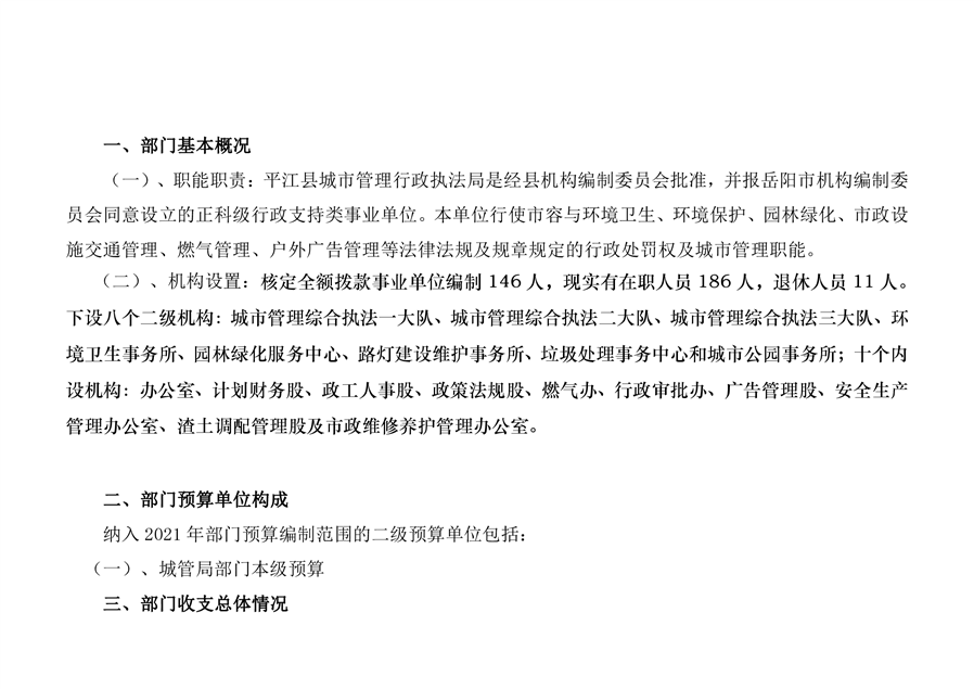 平江县城市管理和综合执法局2021年部门预算说明 本级预算