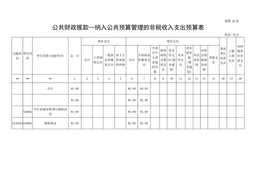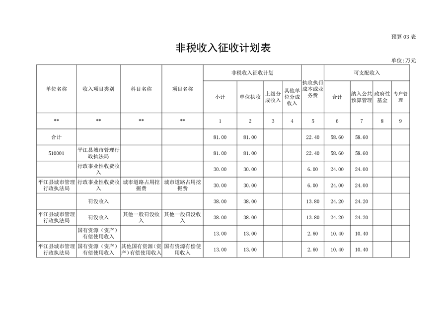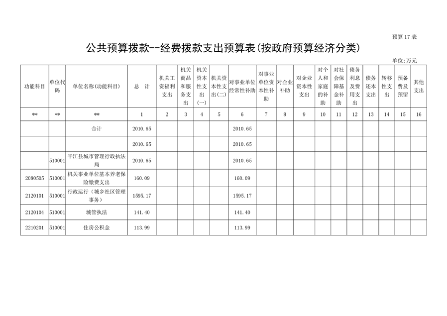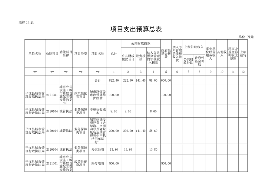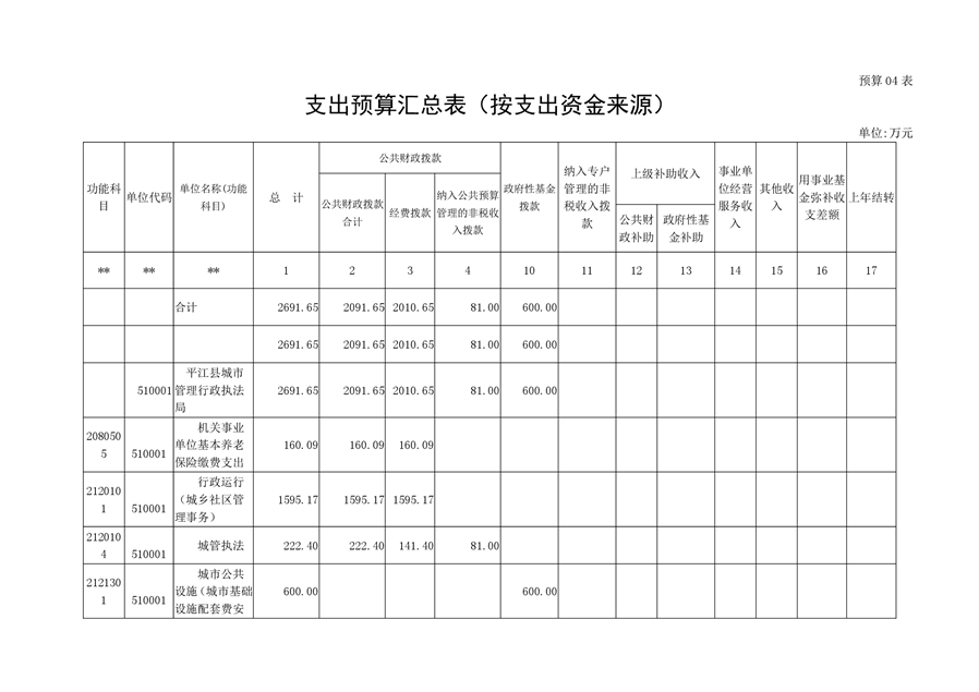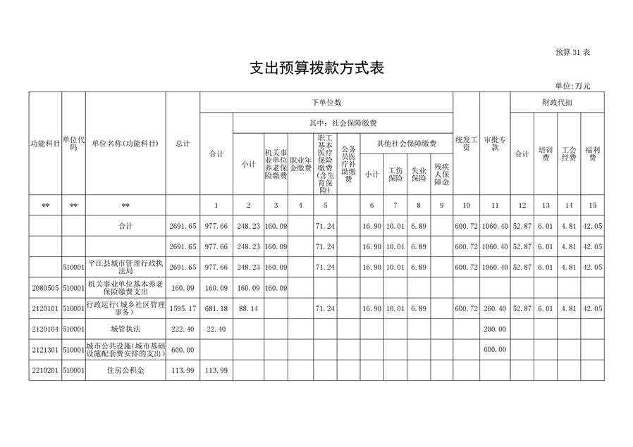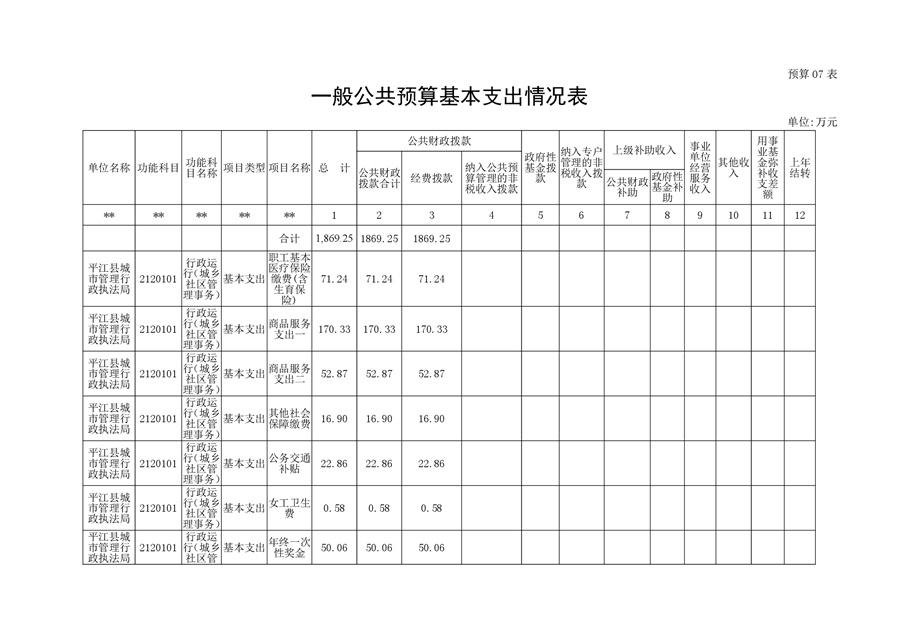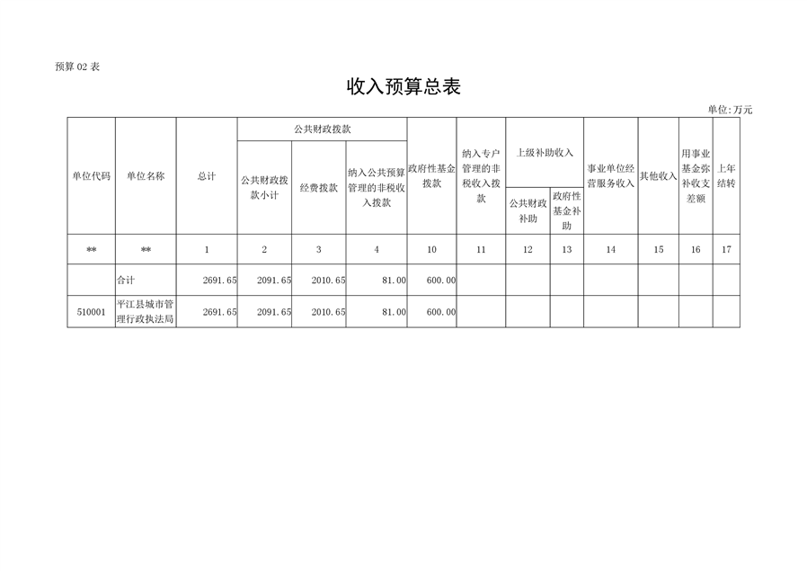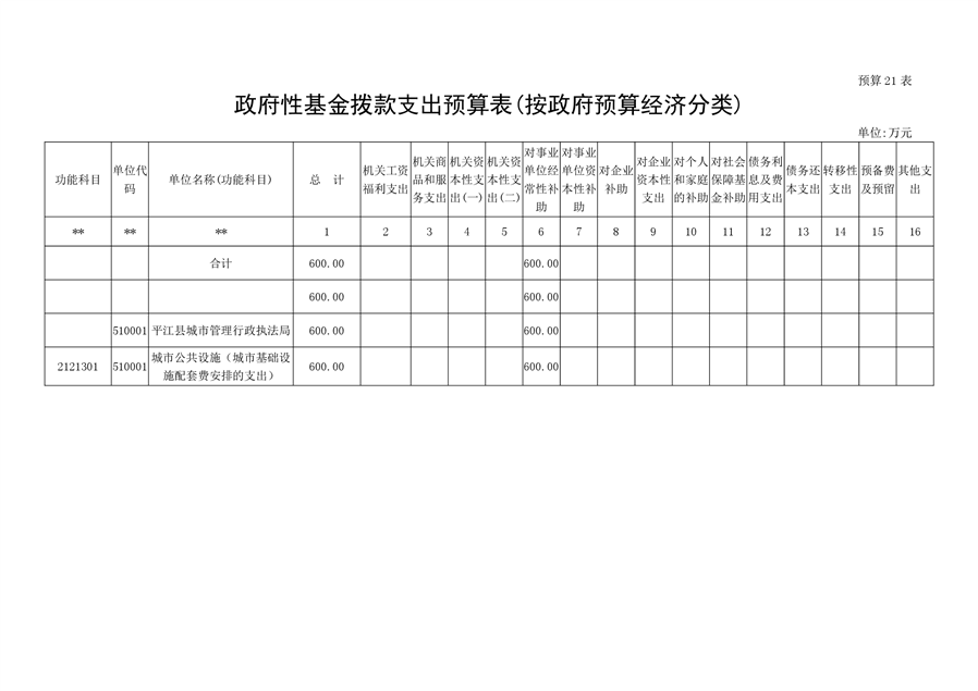 平江县城市管理和综合执法局2021年部门预算说明 本级预算