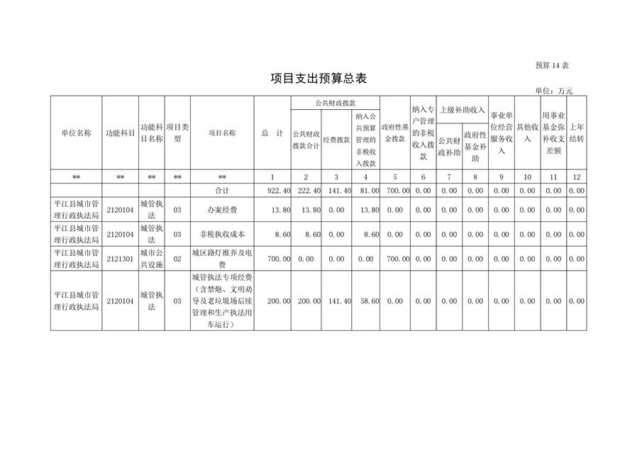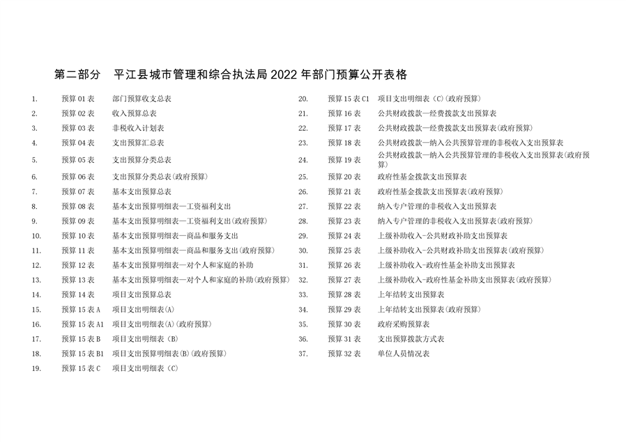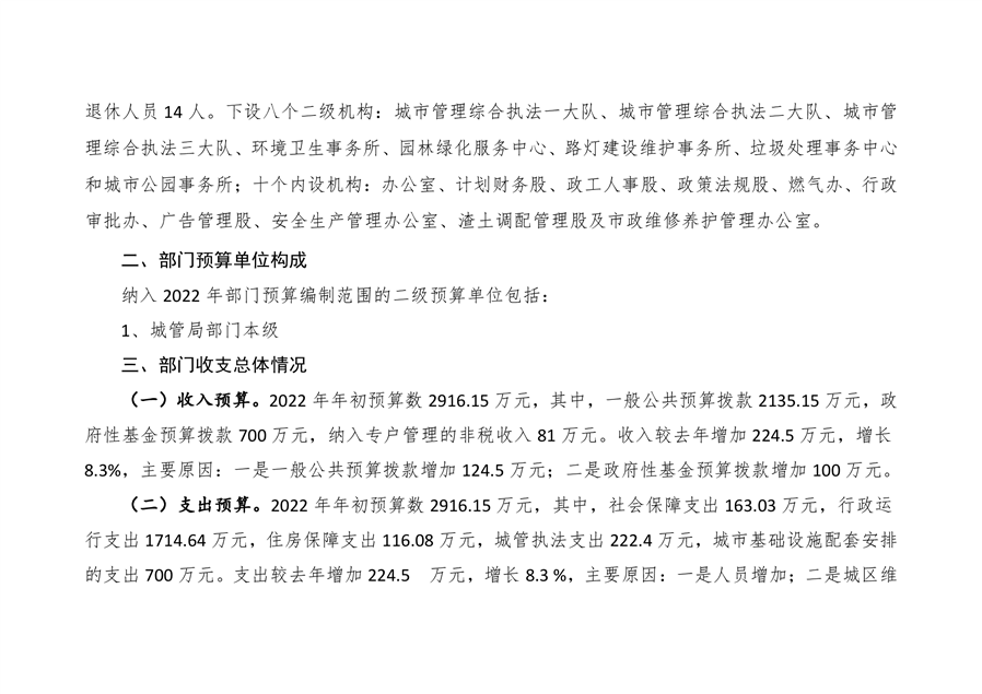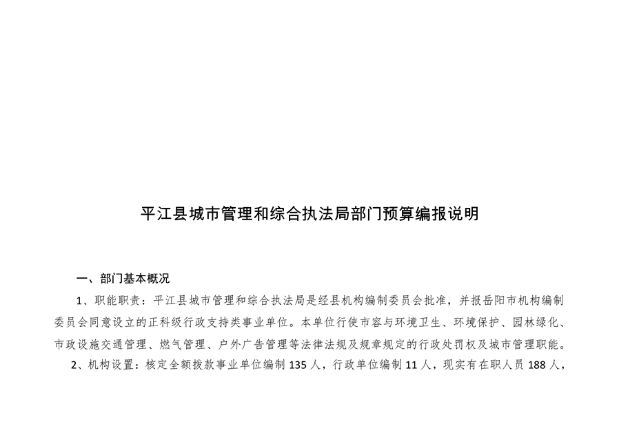 平江县城市管理和综合执法局2022年部门预算编报说明