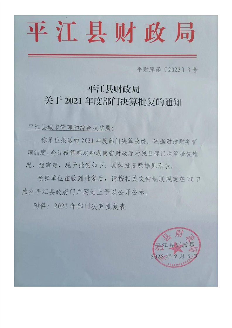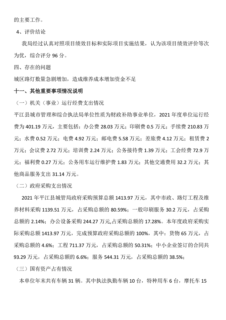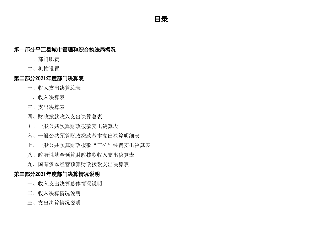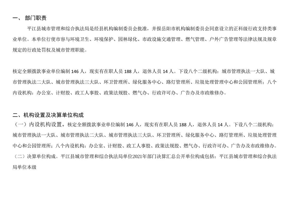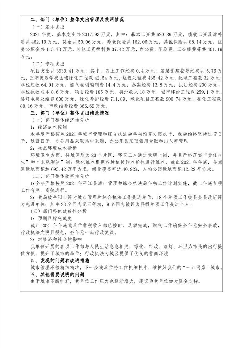 平江县城市管理和综合执法局2021年度部门决算公开