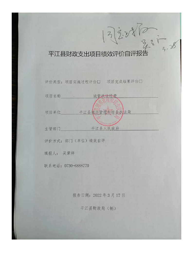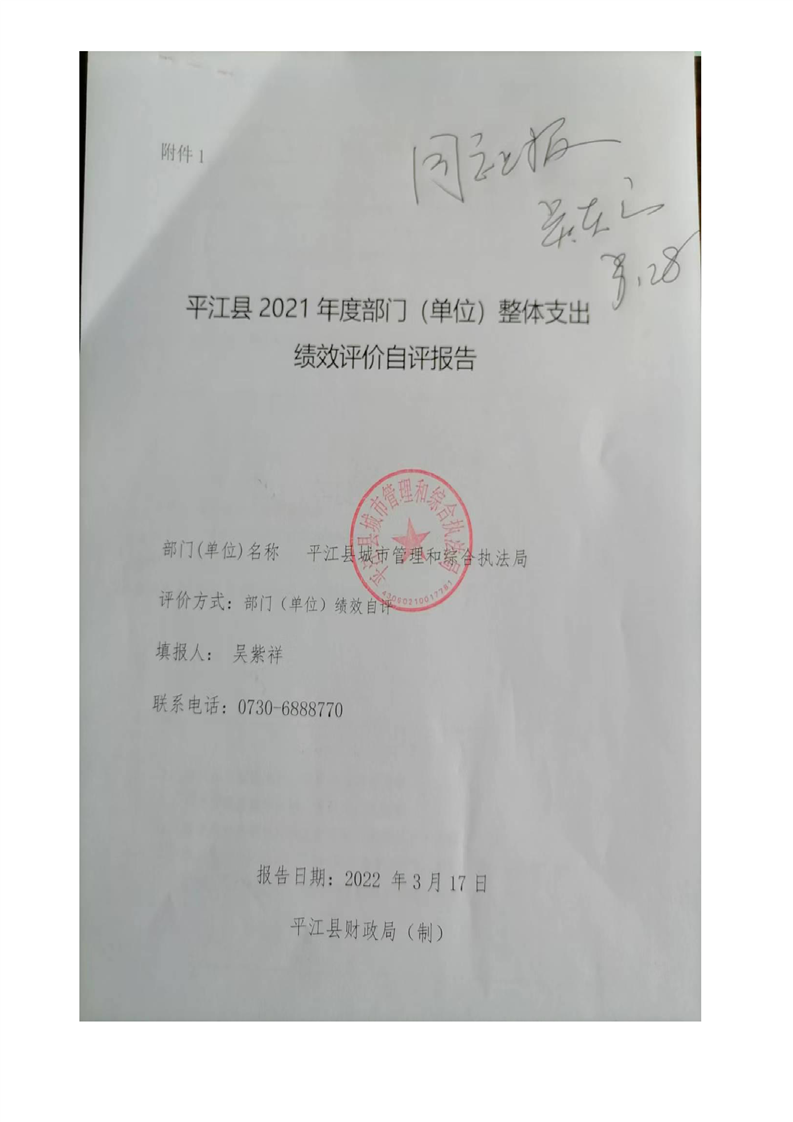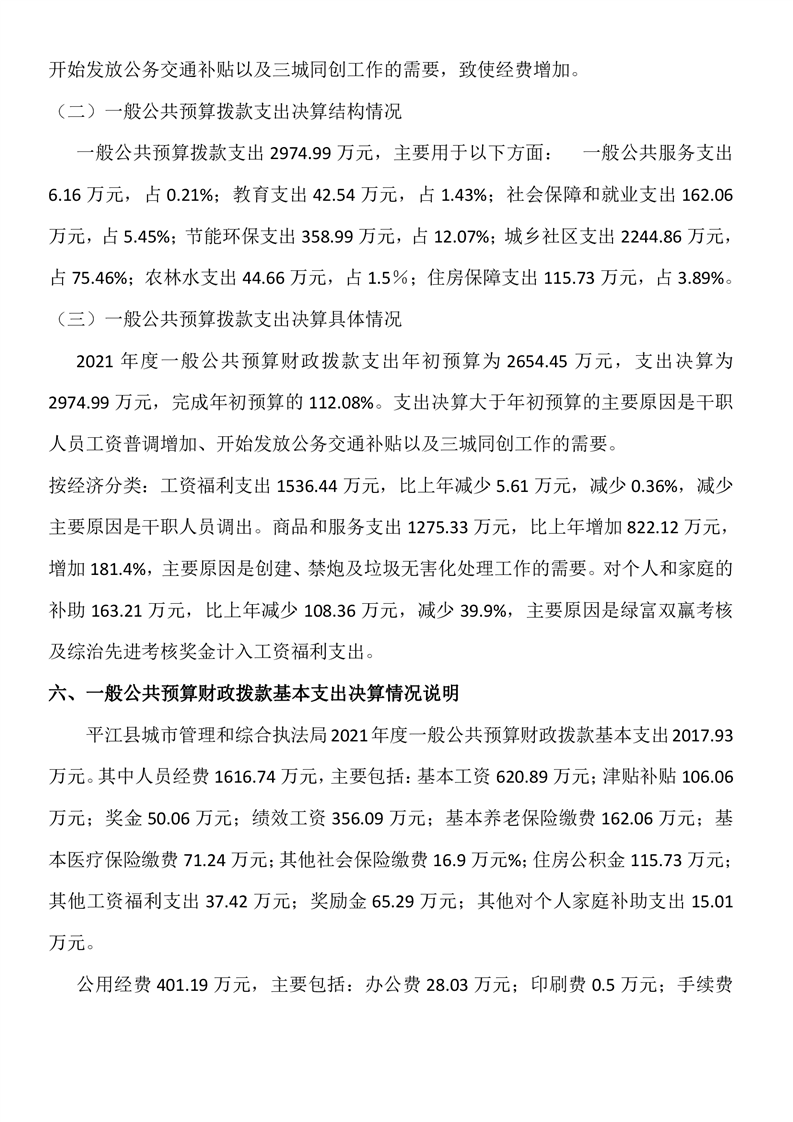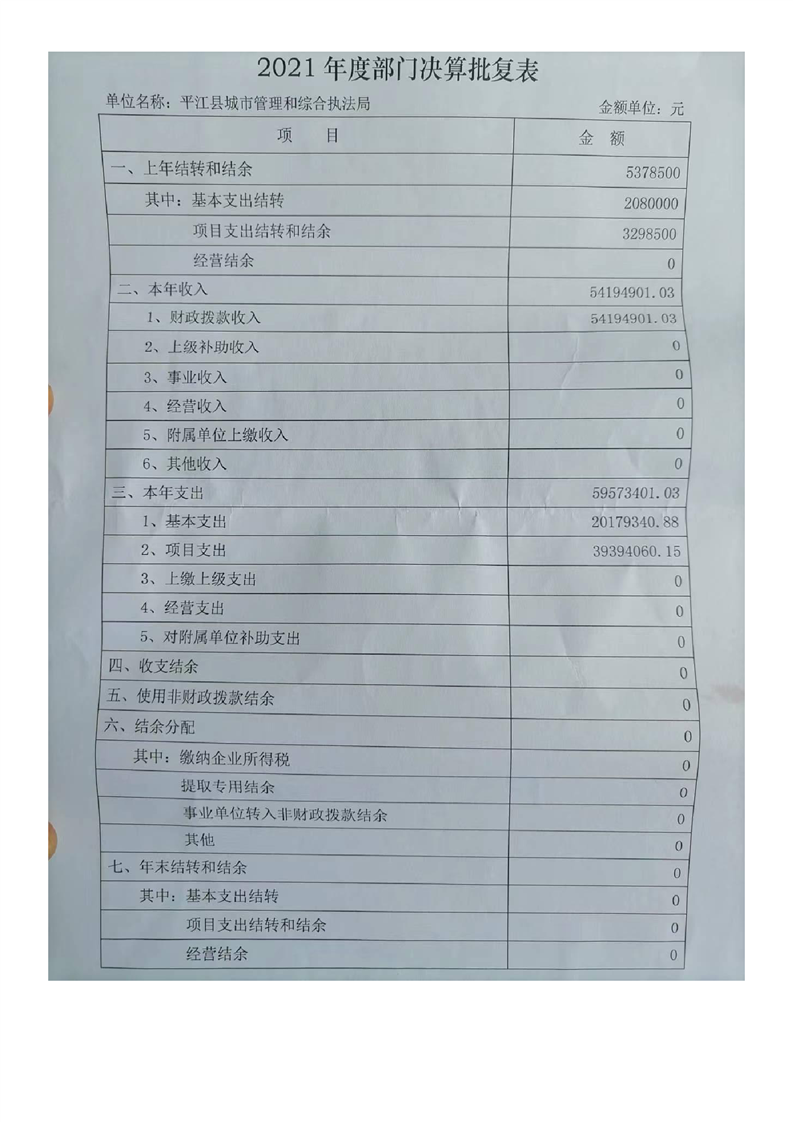 平江县城市管理和综合执法局2021年度部门决算公开