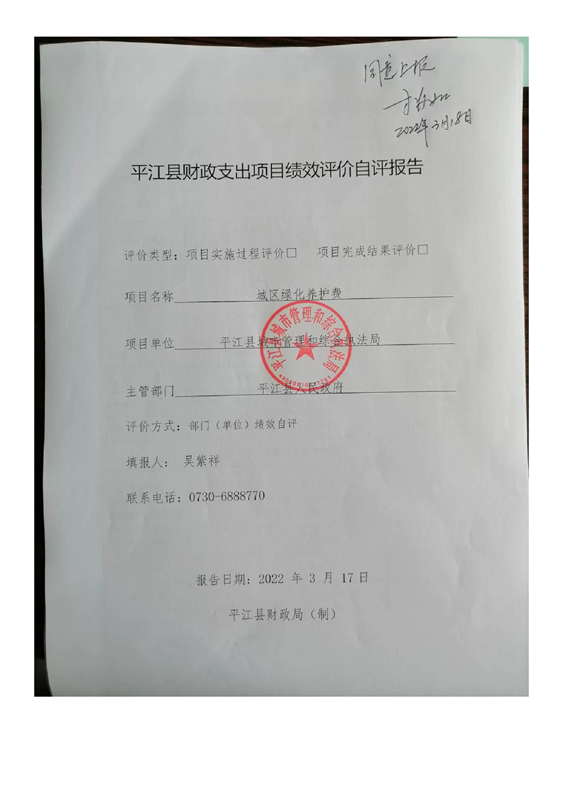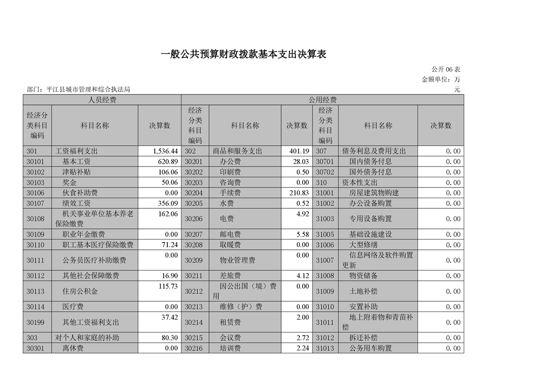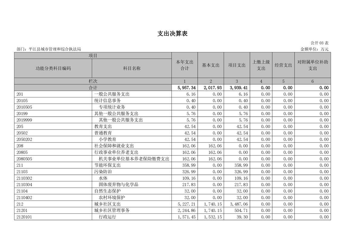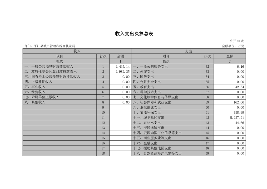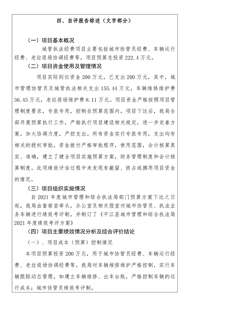 平江县城市管理和综合执法局2021年度部门决算公开