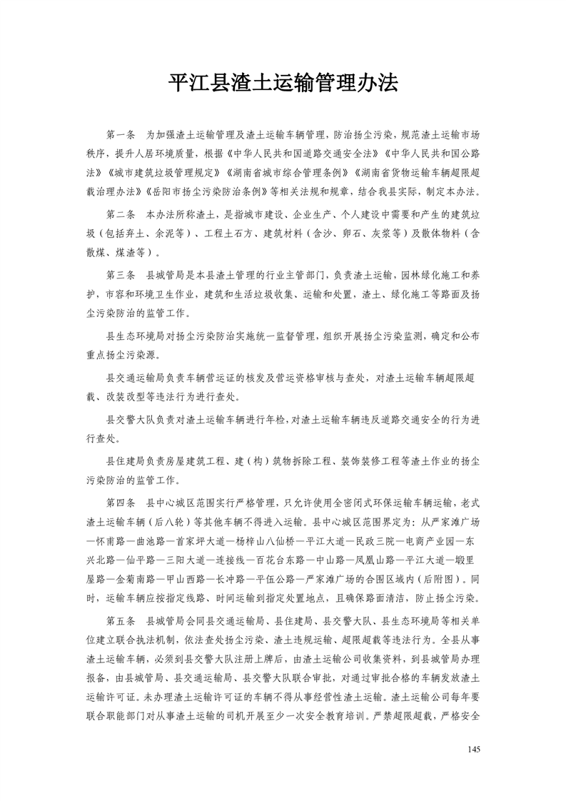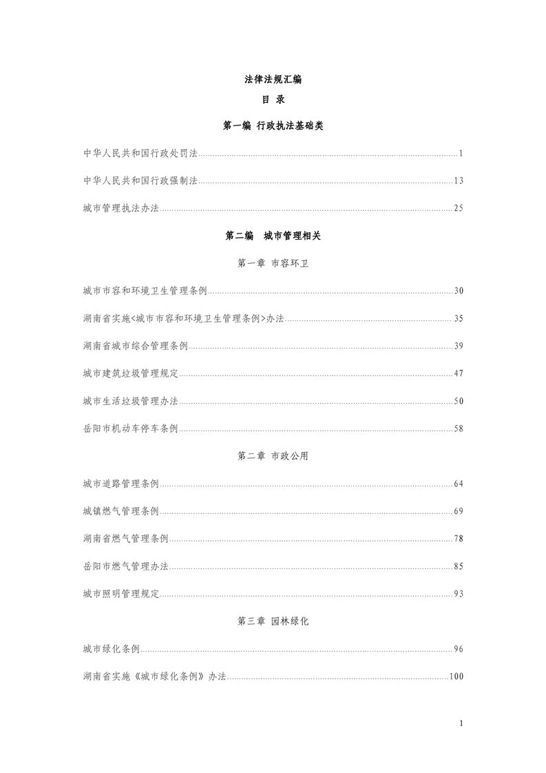 平江县城市管理和综合执法局法律法规汇编