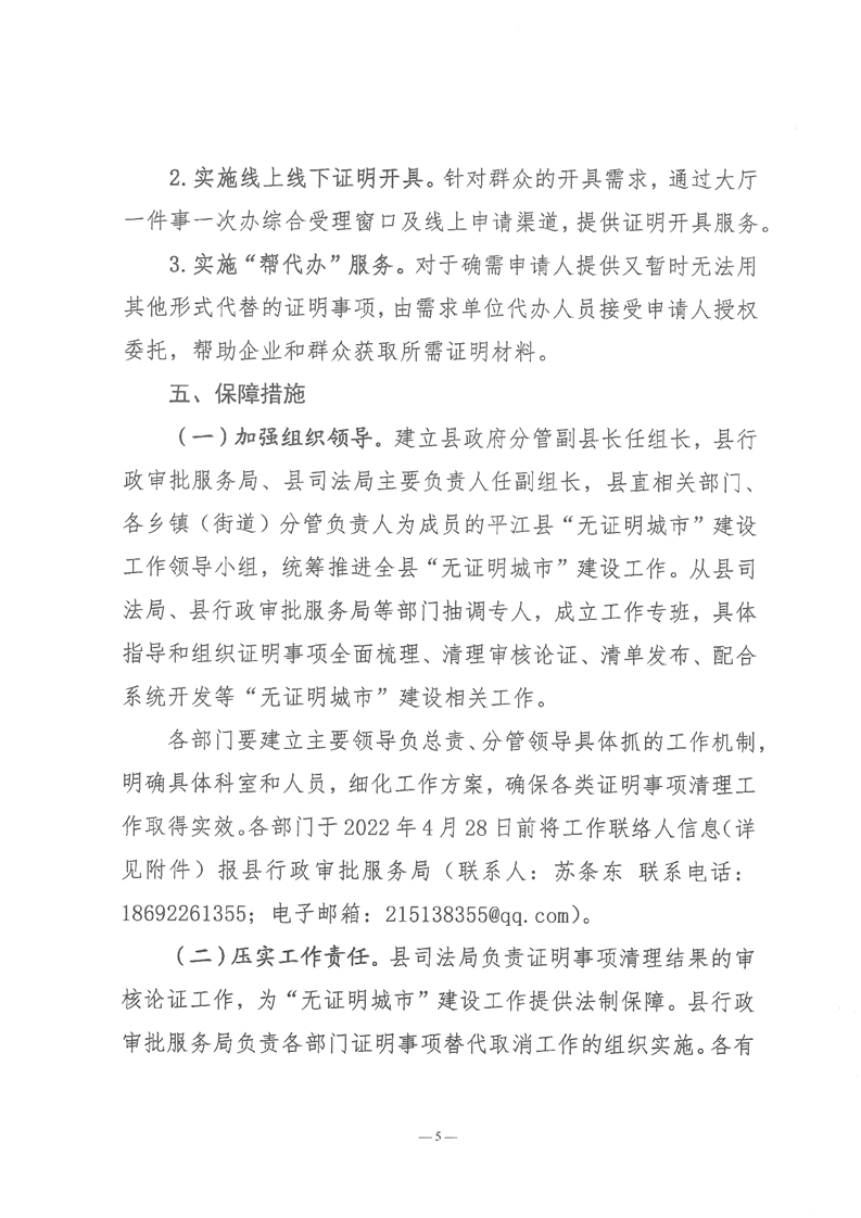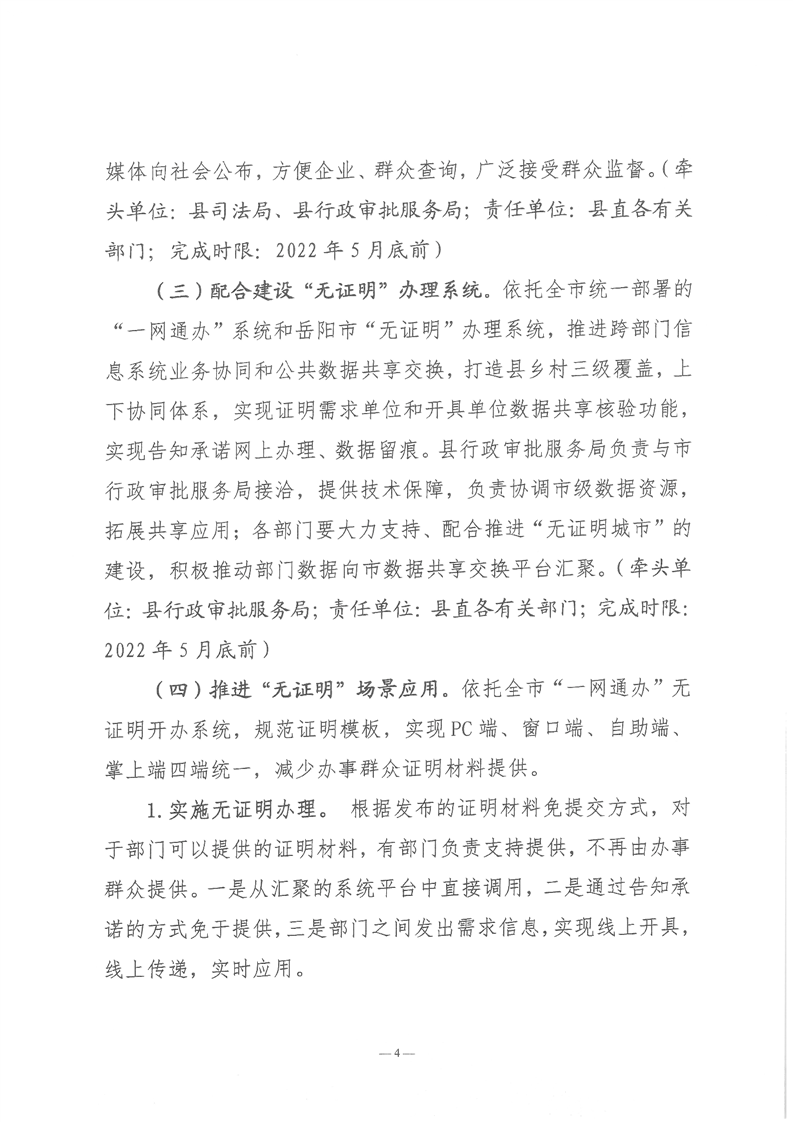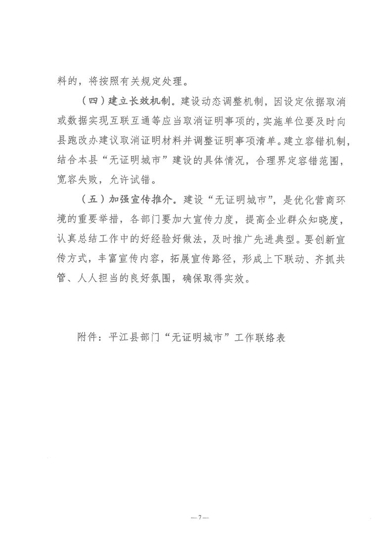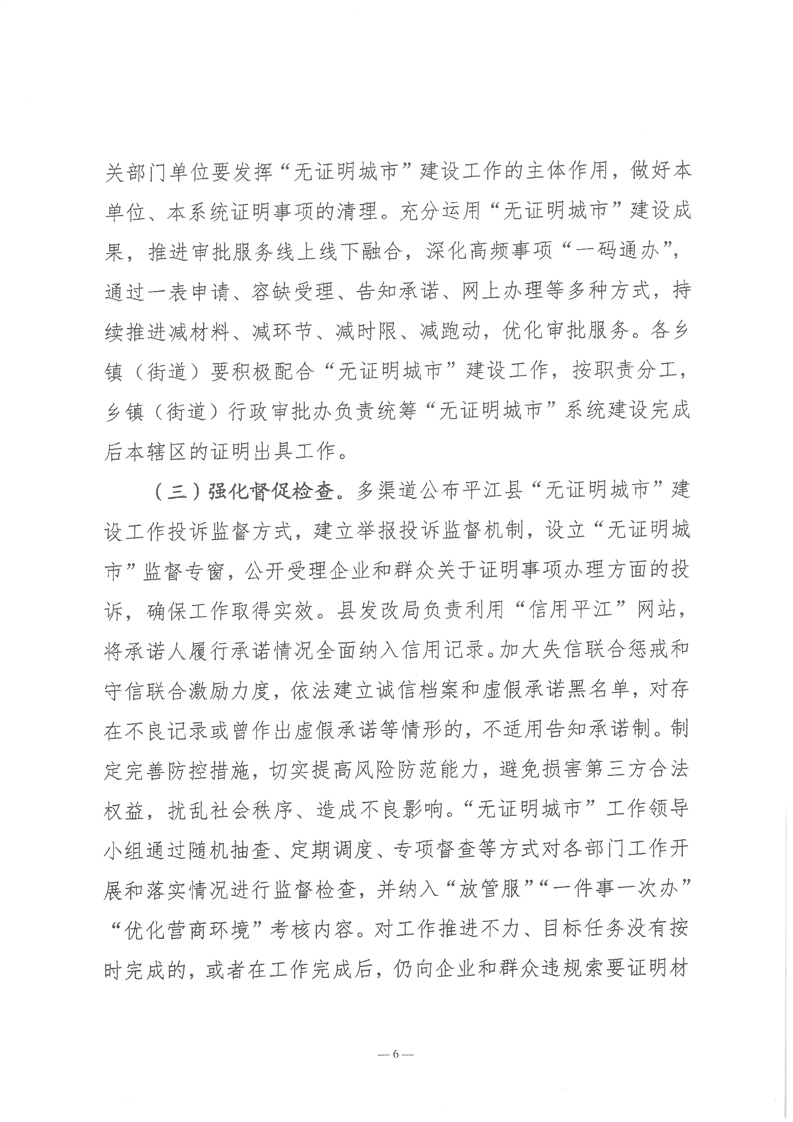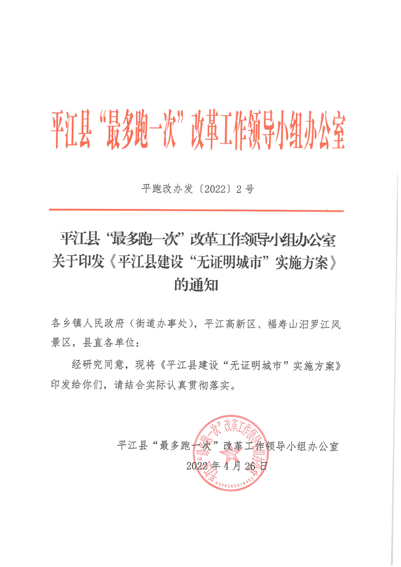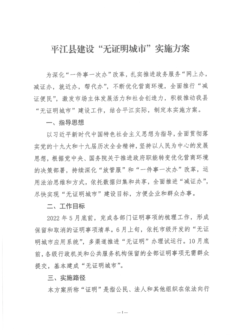 关于印发《平江县建设“无证明城市”实施方案》的通知
