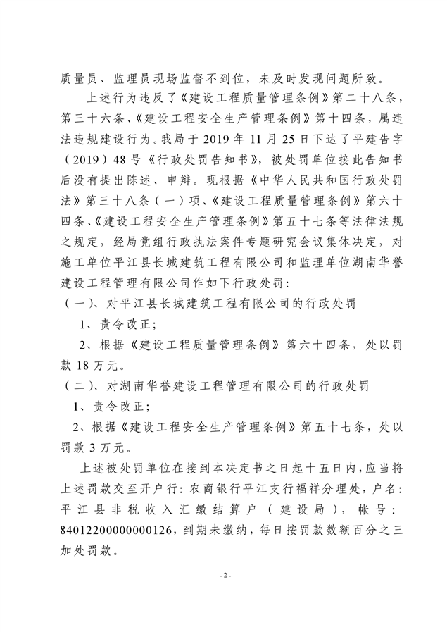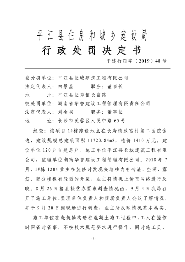 行政处罚决定书平建行罚字(2019)48号