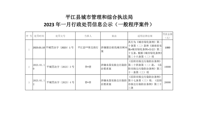 2023年1.12行政处罚信息公示 (一般程序案件)