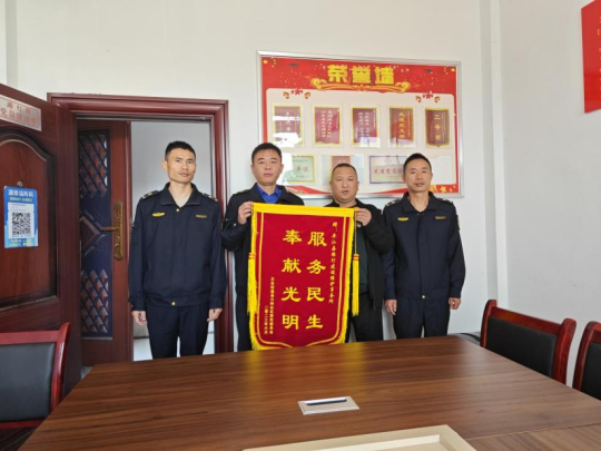 10月11日,高义岭社区居民来到路灯建设维护事务所,将一面印有“服务民生奉献光明”的锦旗送到路灯所负责人手中,以感谢路灯所为谭家垅东路新装路灯。