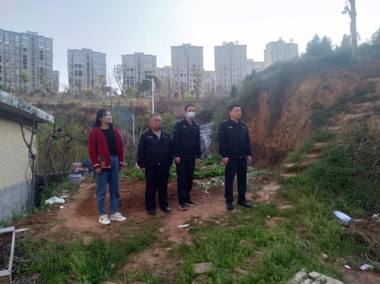 3月30日,朱平洋局长带队及相关部门负责人一同前往进行现场勘查,并给予下一步工作指示,让物业工作人员通知种菜居民在一周内自行将菜清理完,绿化部门要做好绿地恢复准备工作。