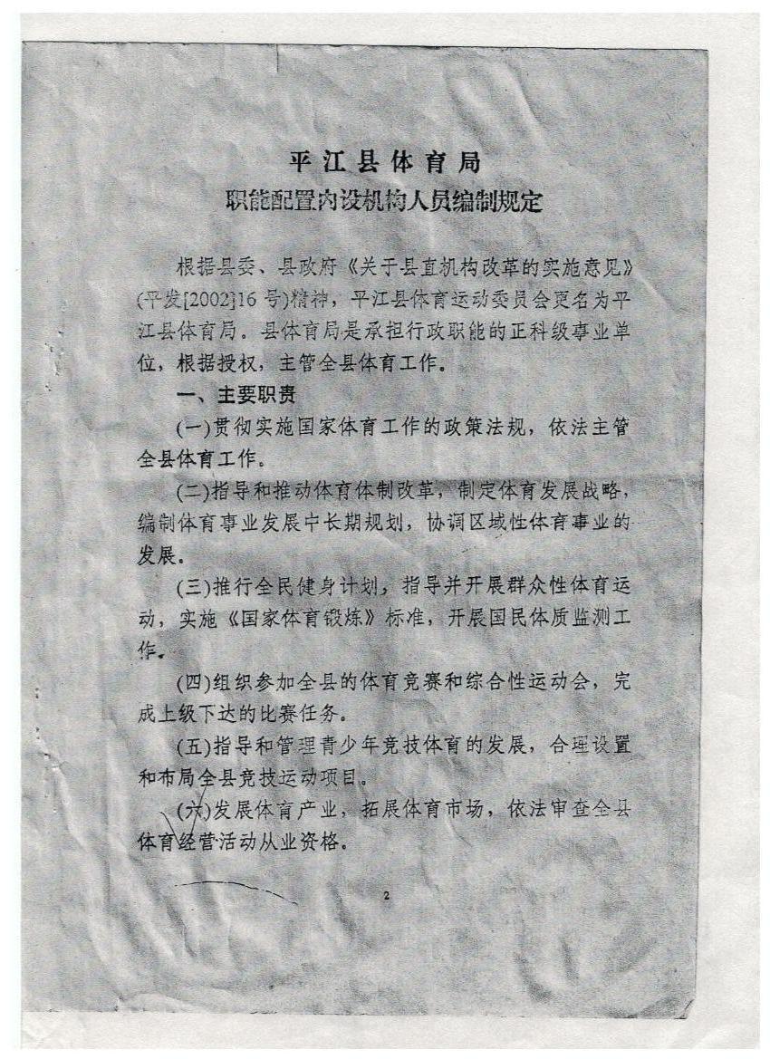 中共平江县委、平江县人民政府关于印发《平江县体育局职能配置内设机构人员编制规定》的通知
