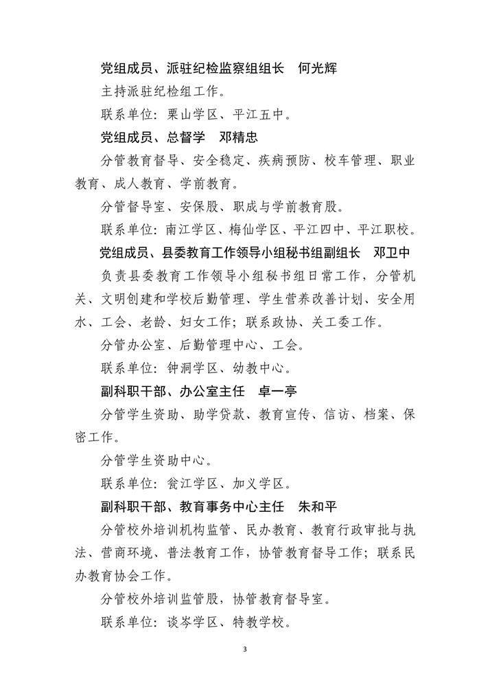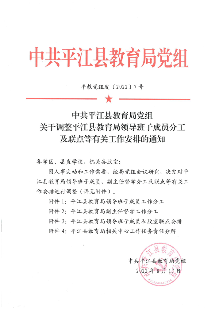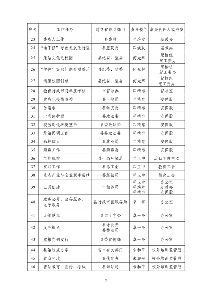 2023年县教育局领导班子成员分工及股室联点等有关工作安排