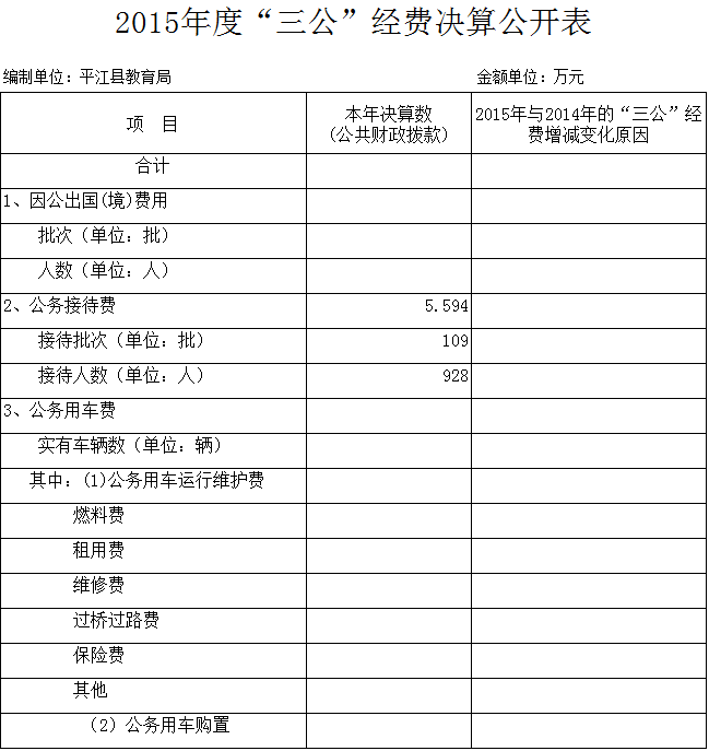 平江县教育局2015年度三公经费决算公开