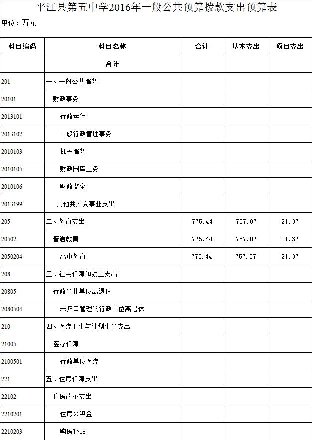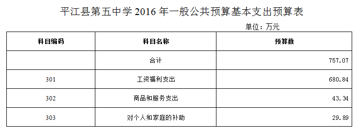 平江县第五中学2016年部门预算编报说明