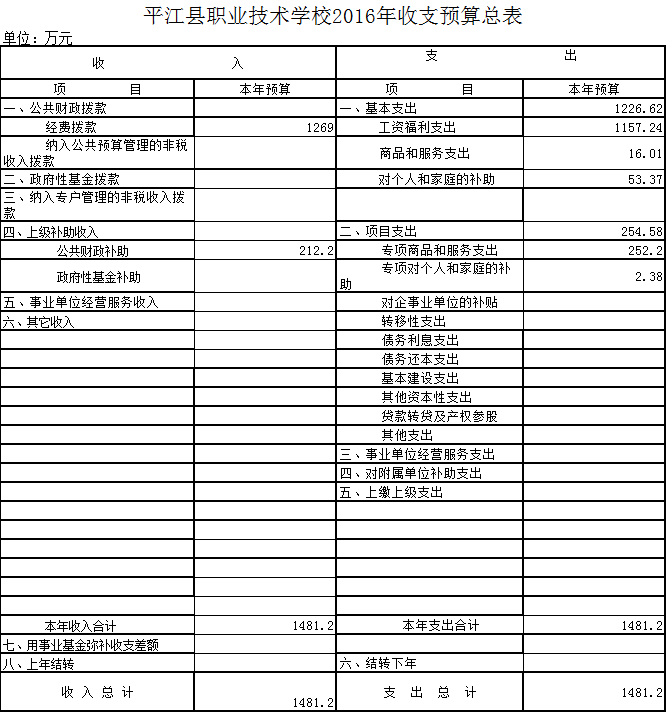 (一)收入预算:2016年年初预算数为1481.20万元。其中,一般公共预算拨款为1269万元,上级补助收入212.20万元。