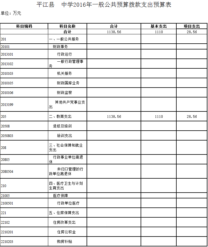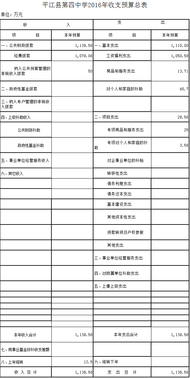 2016年预算总收入1138.56万元。其中:财政拨款1138.56万元。预算总支出1138.56万元,预算收支平衡。