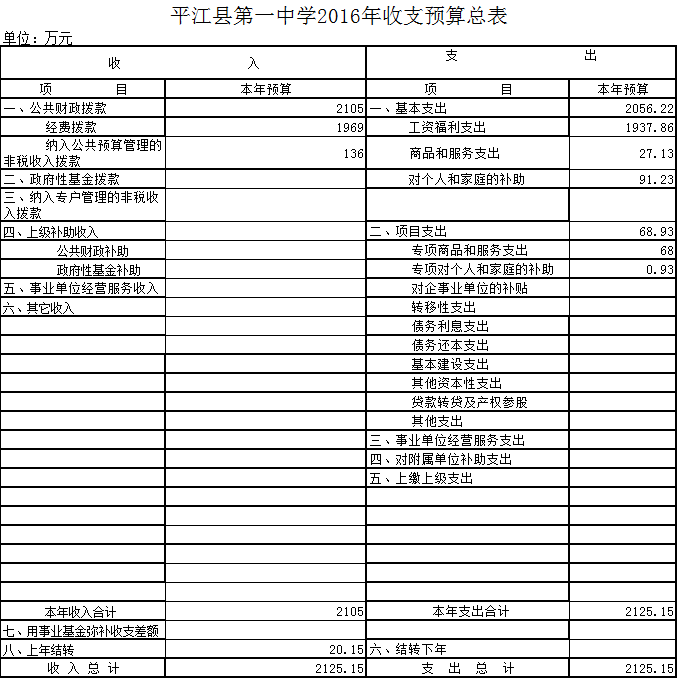 收入预算合计2125.15万元,其中:公共财政拨款资金2105万元,上年结转20.15万元。