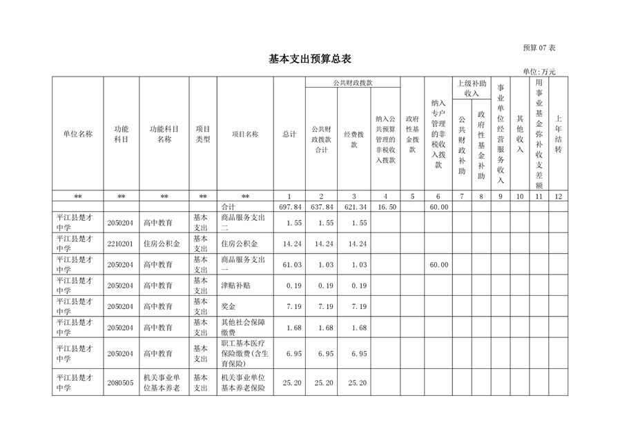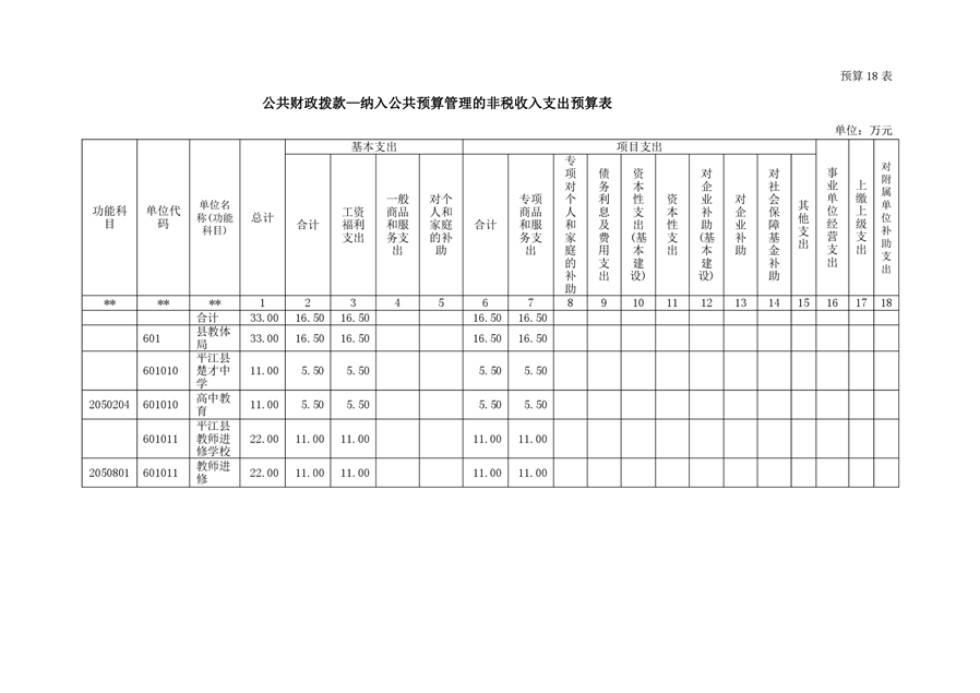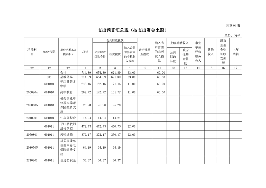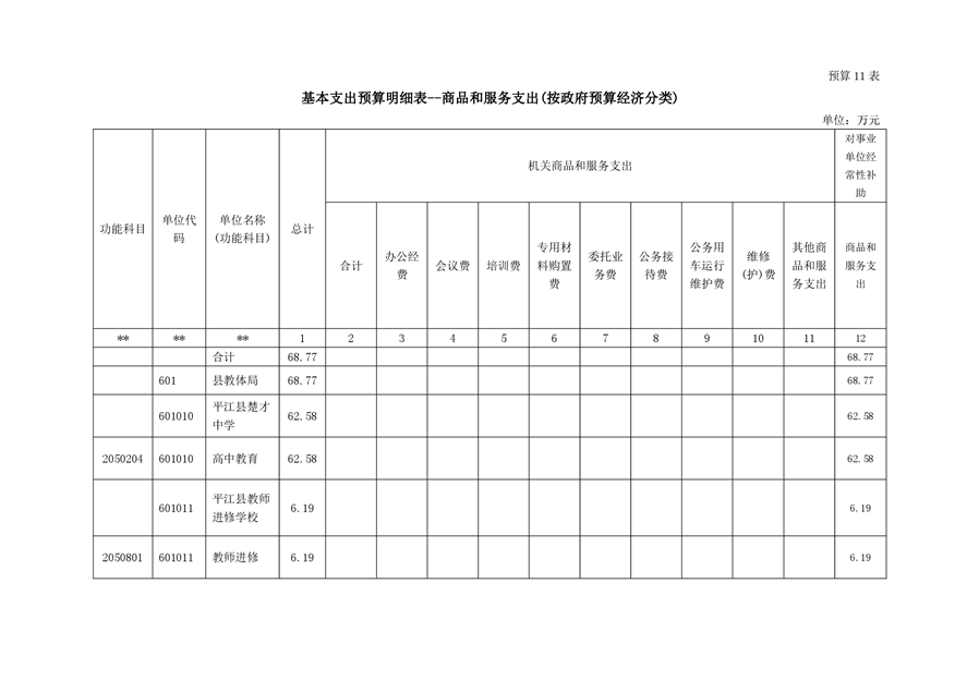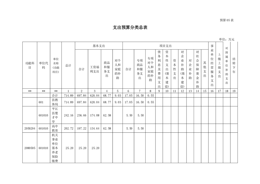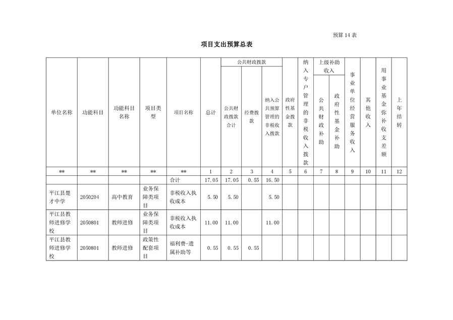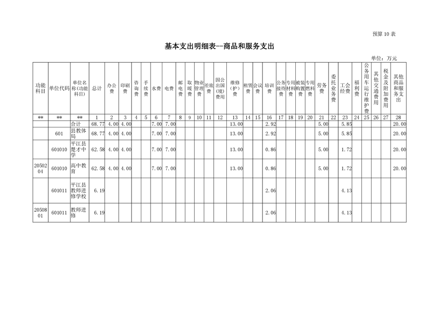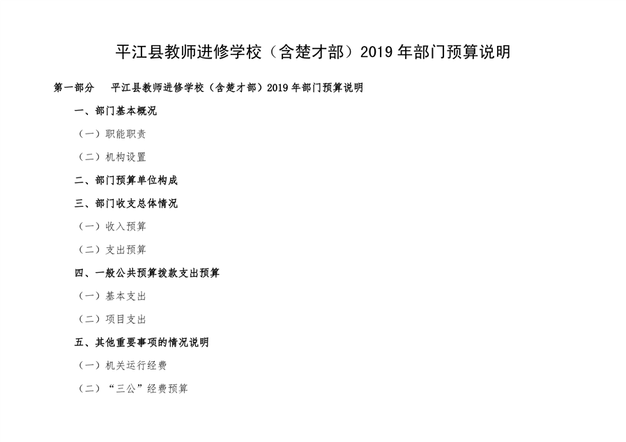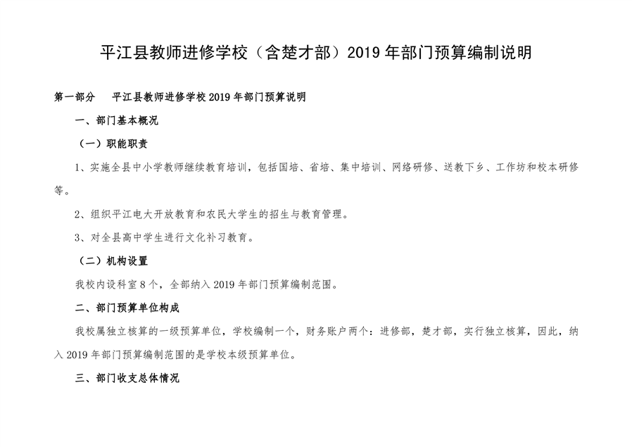 平江县教师进修学校(含楚才部)2019年部门预算编报说明