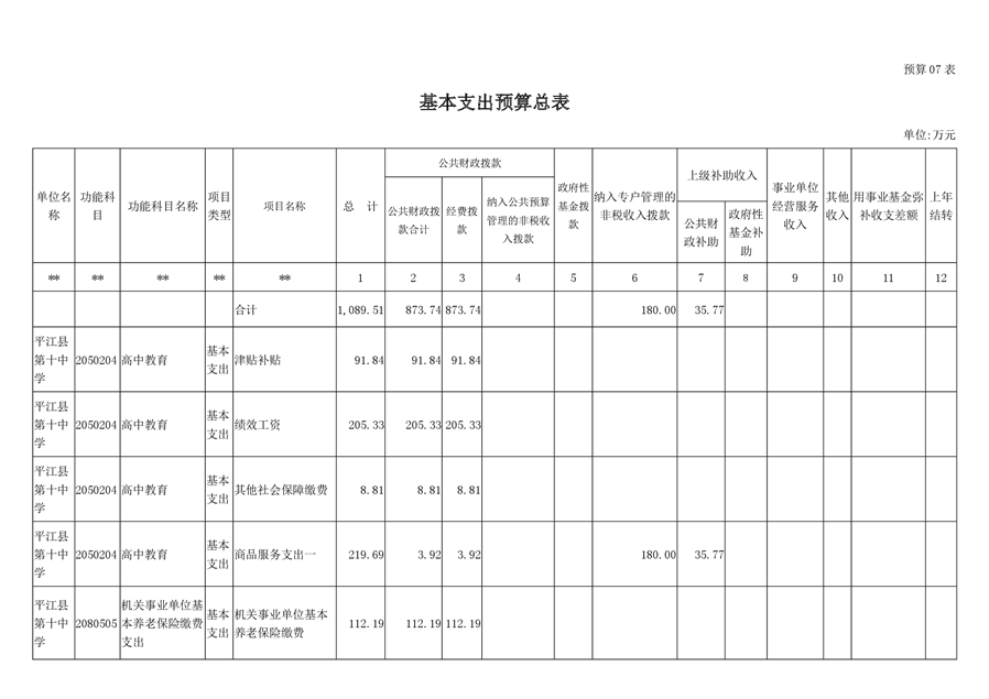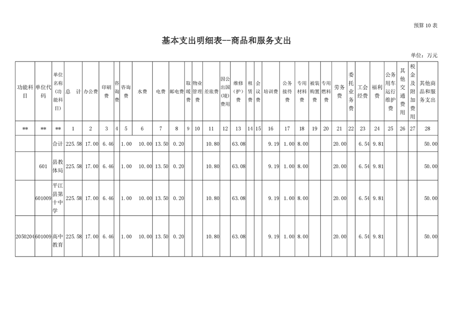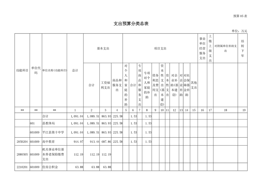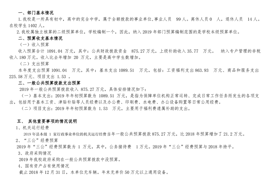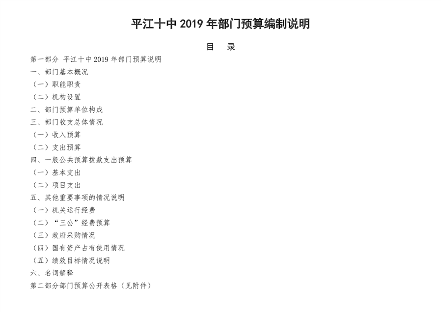 平江十中2019年部门预算编报说明