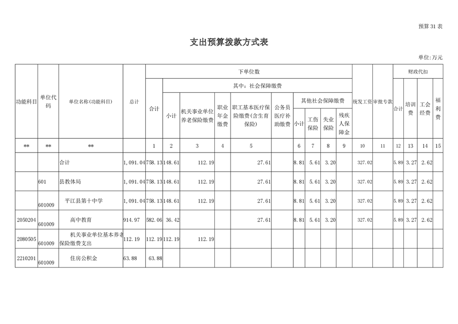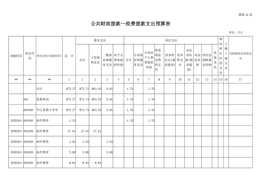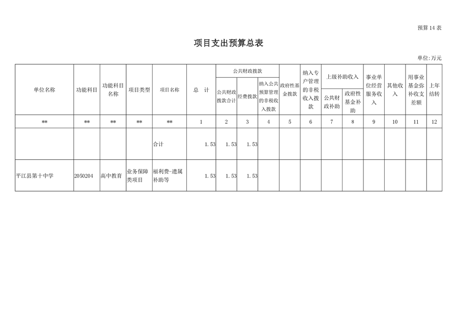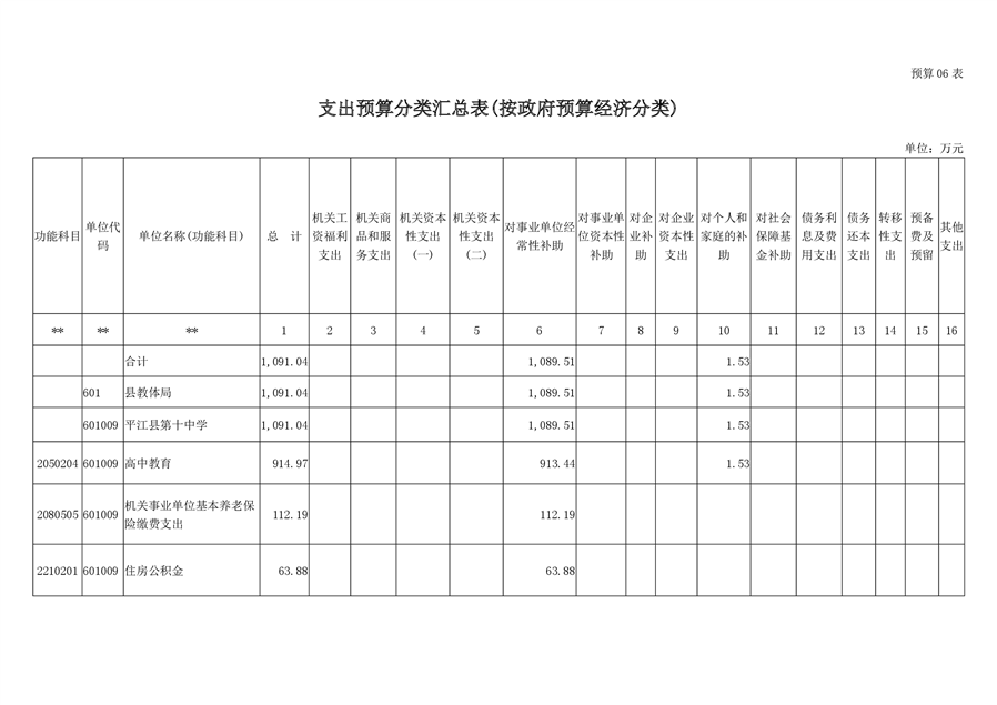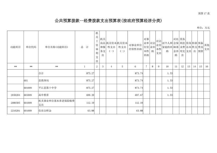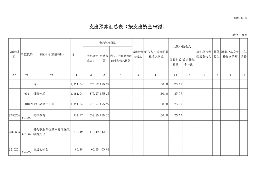 平江十中2019年部门预算编报说明