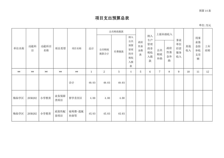 平江县梅仙学区2019年部门预算编报说明