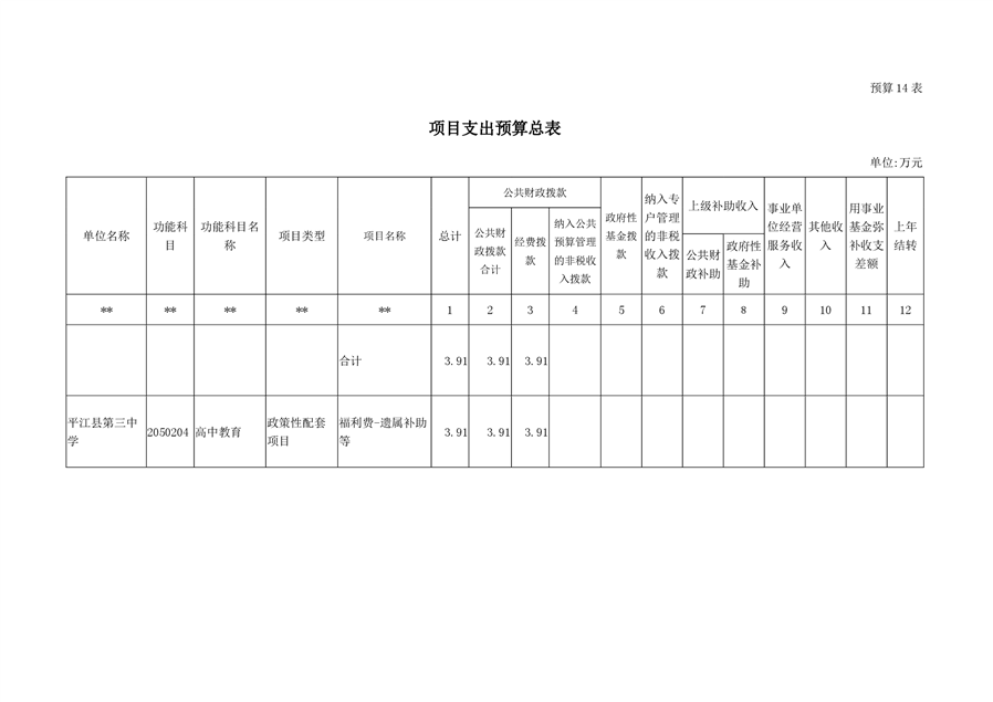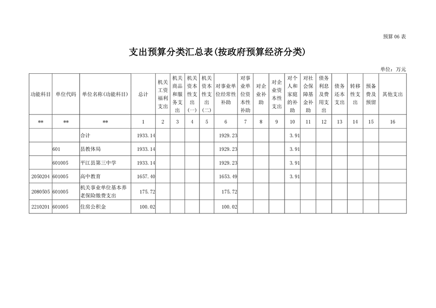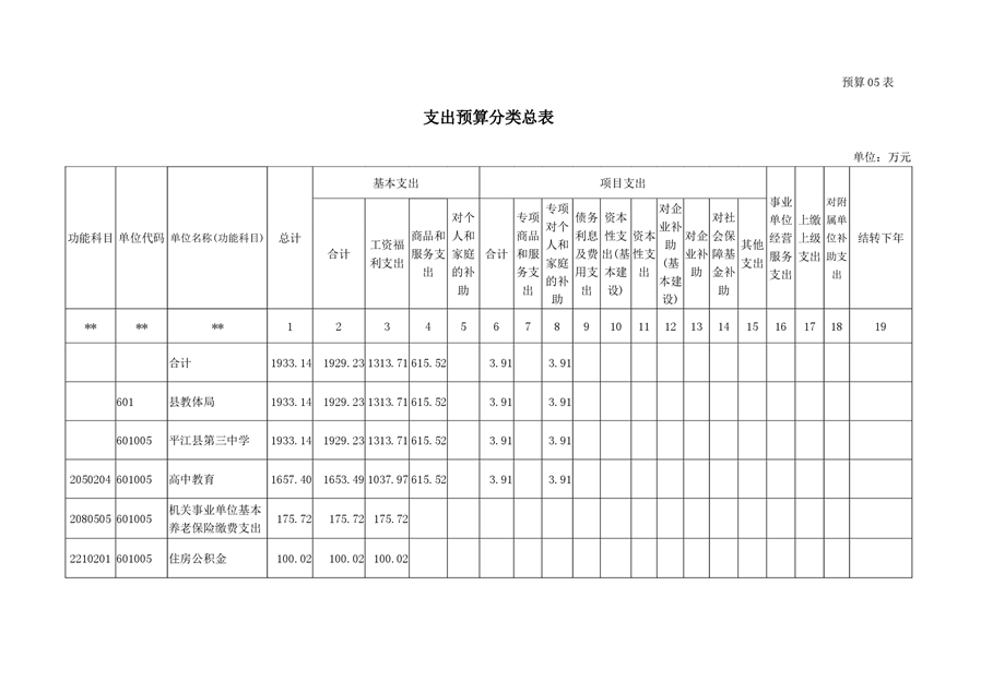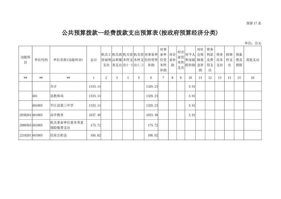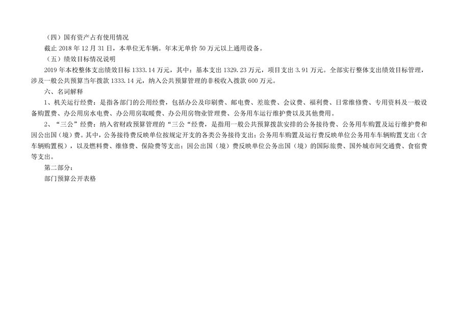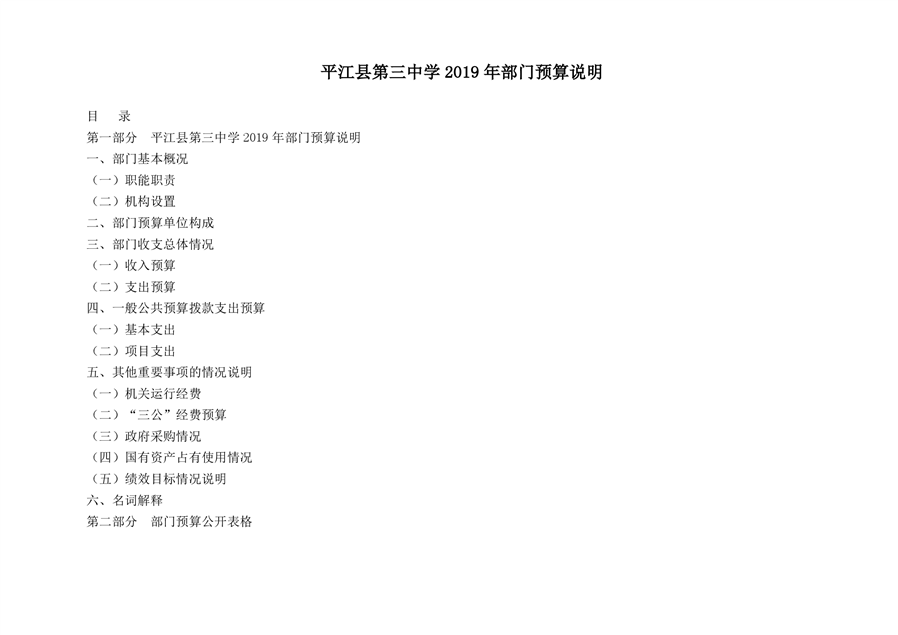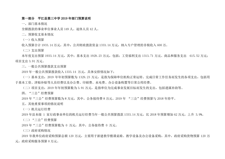 平江第三中学2019年部门预算编报说明