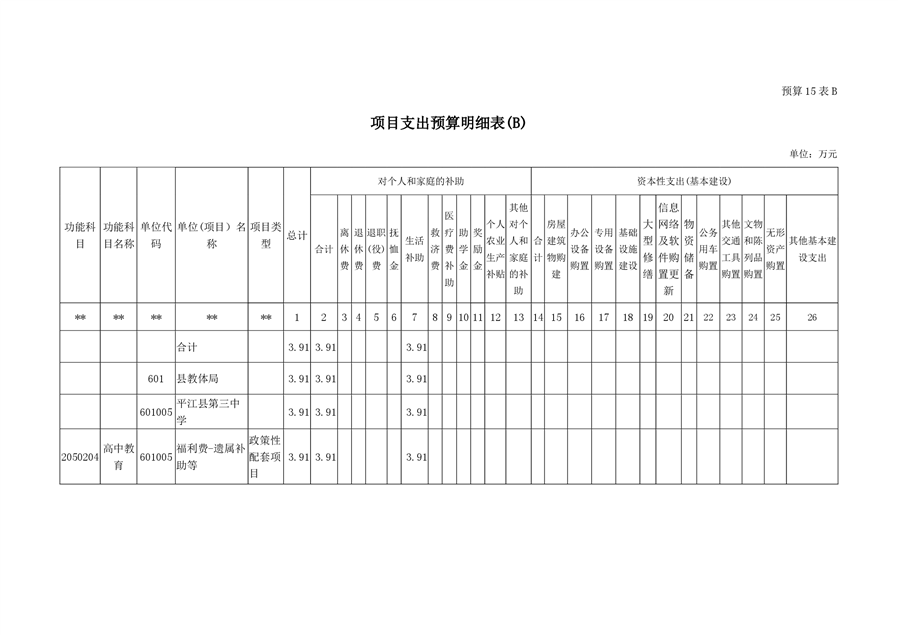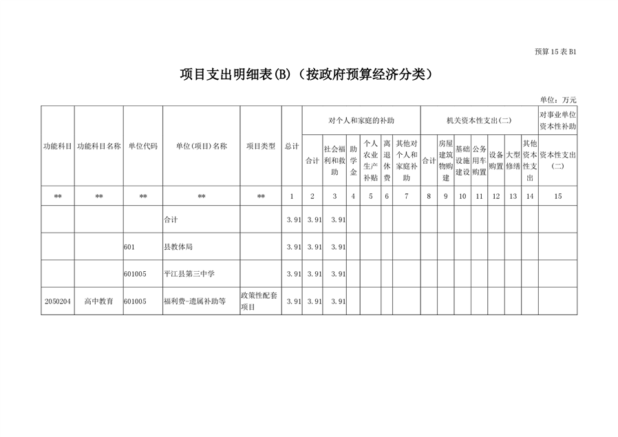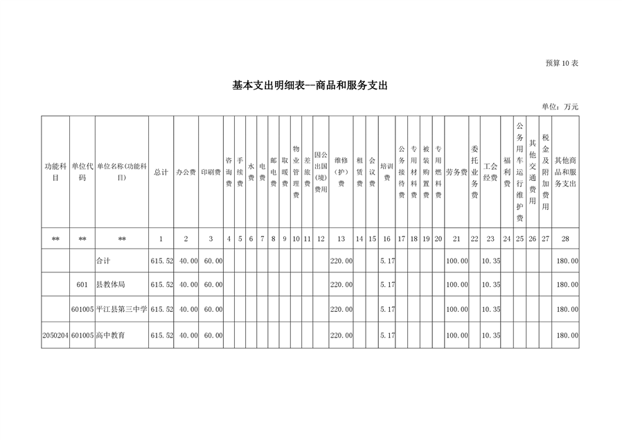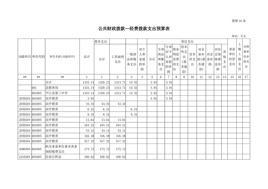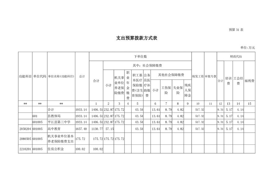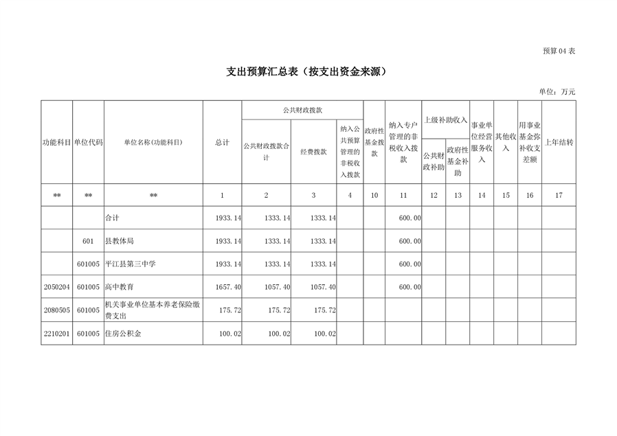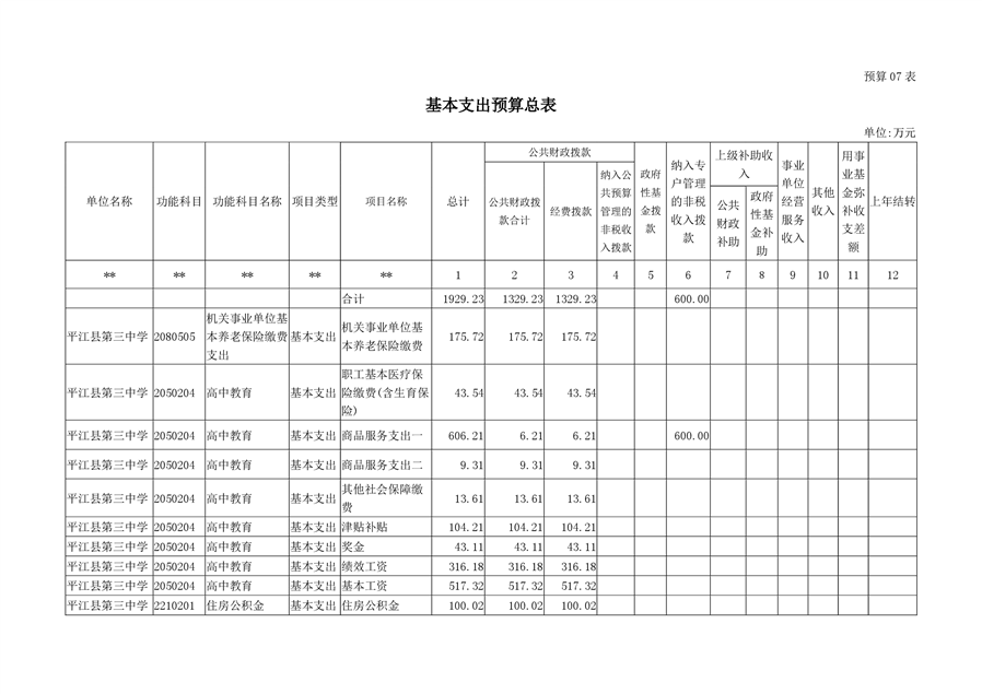 平江第三中学2019年部门预算编报说明