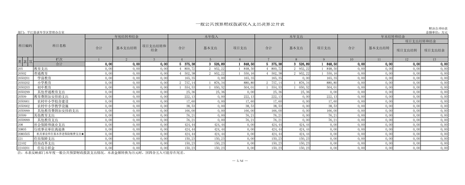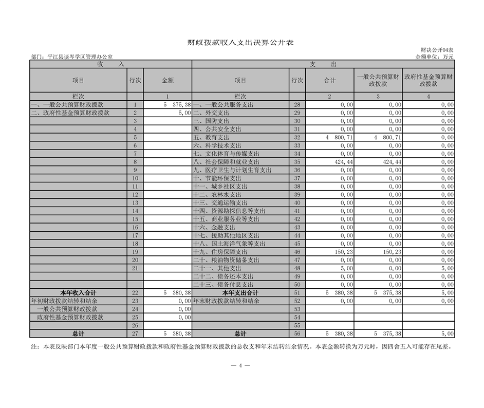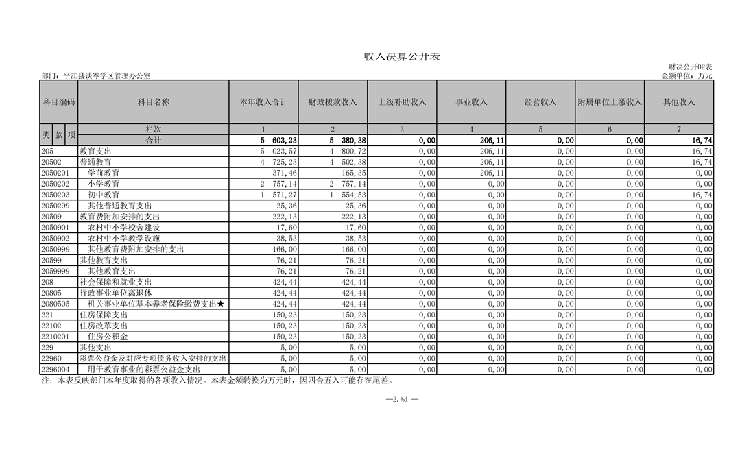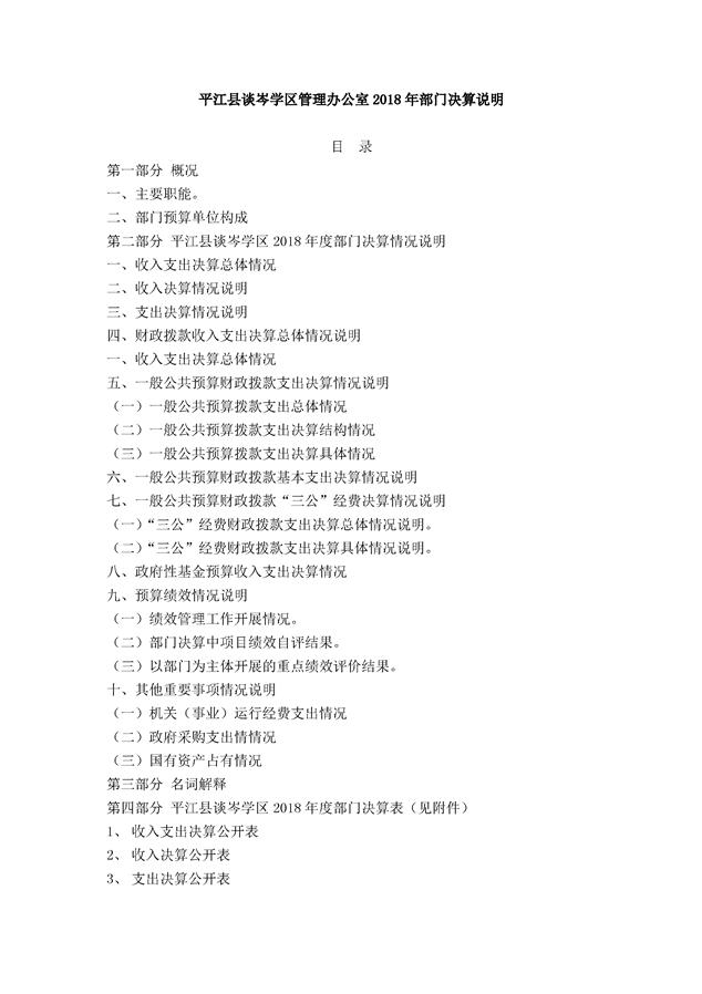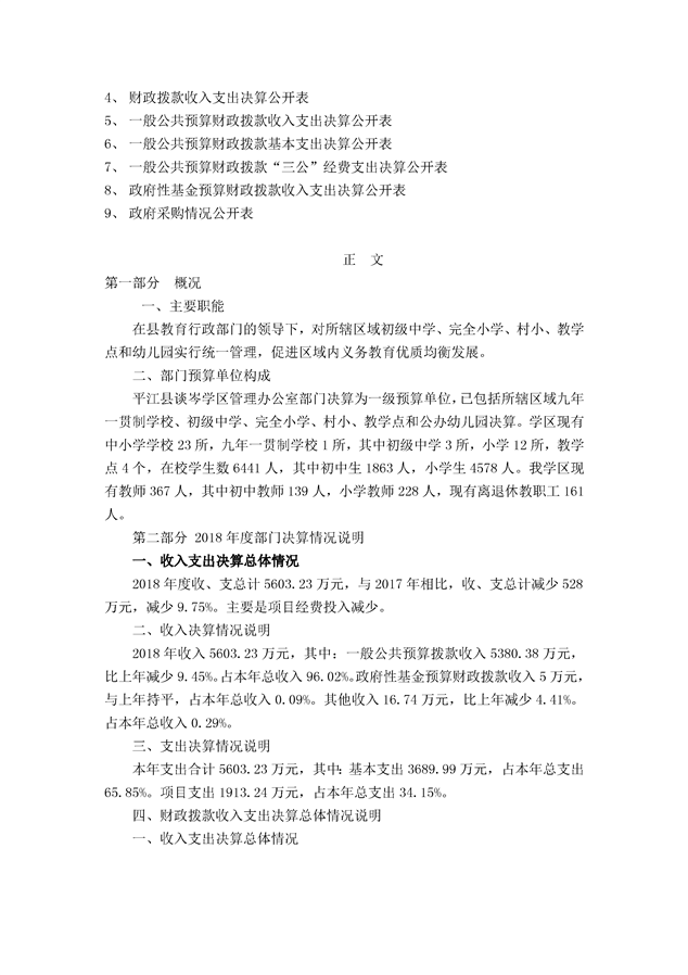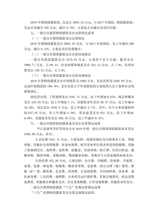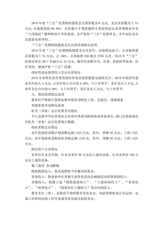 平江县谈岑学区管理办公室2018年部门决算编报说明