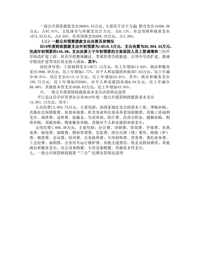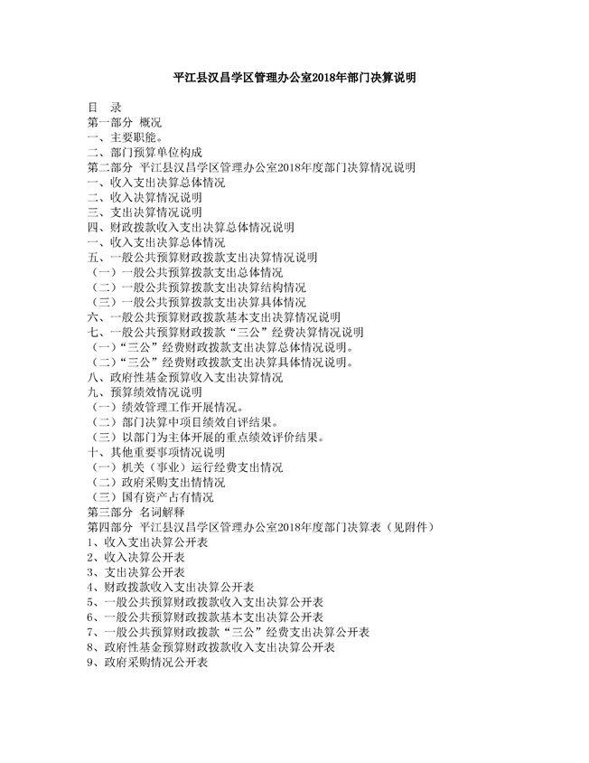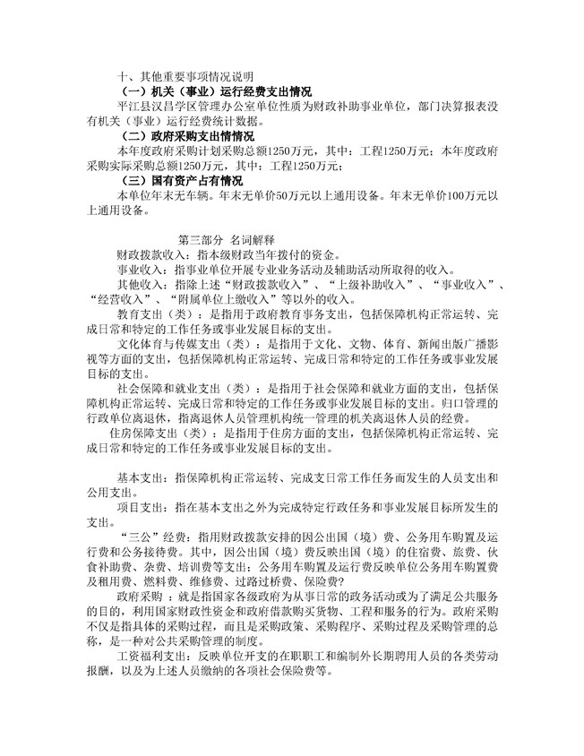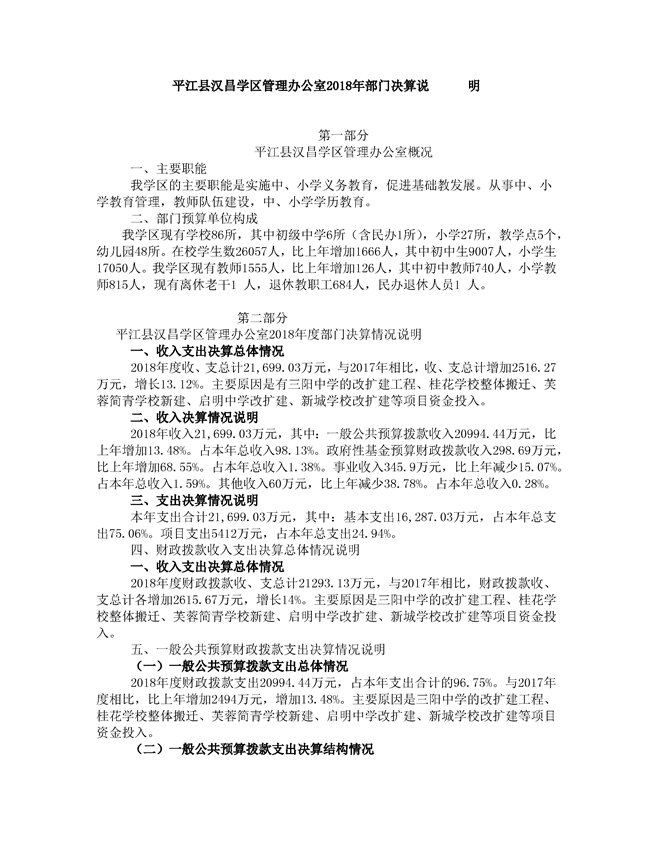 平江县汉昌学区管理办公室2018年部门决算编报说明