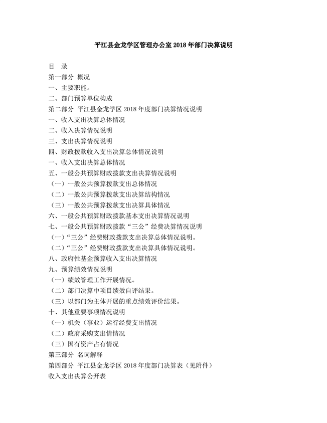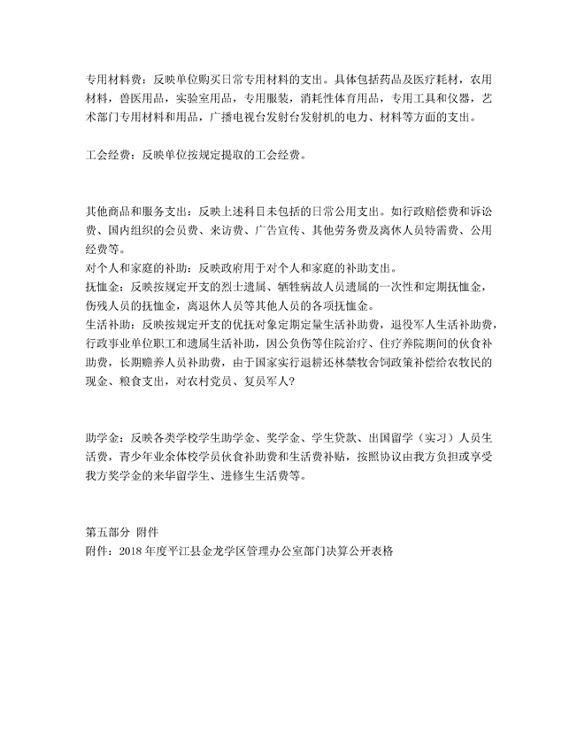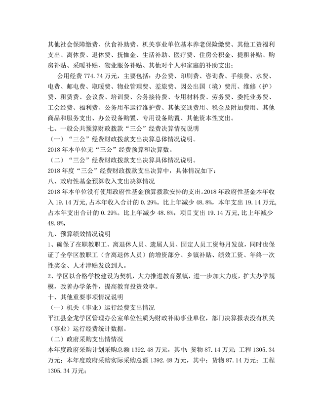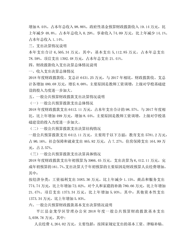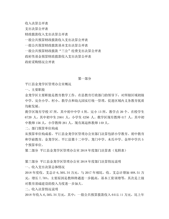 平江县金龙学区管理办公室2018年部门决算编报说明