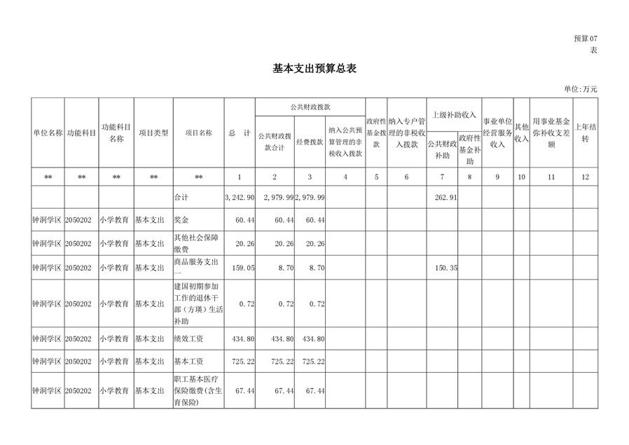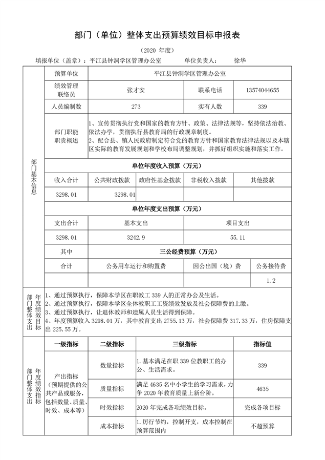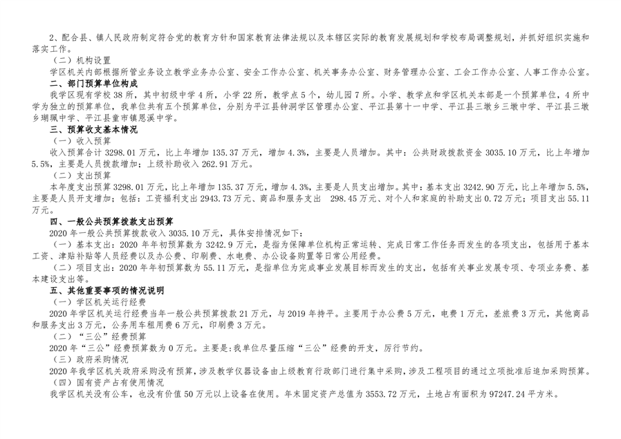 钟洞学区2020年部门预算编报说明