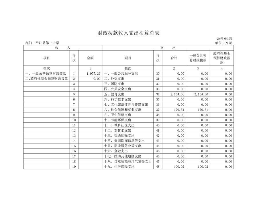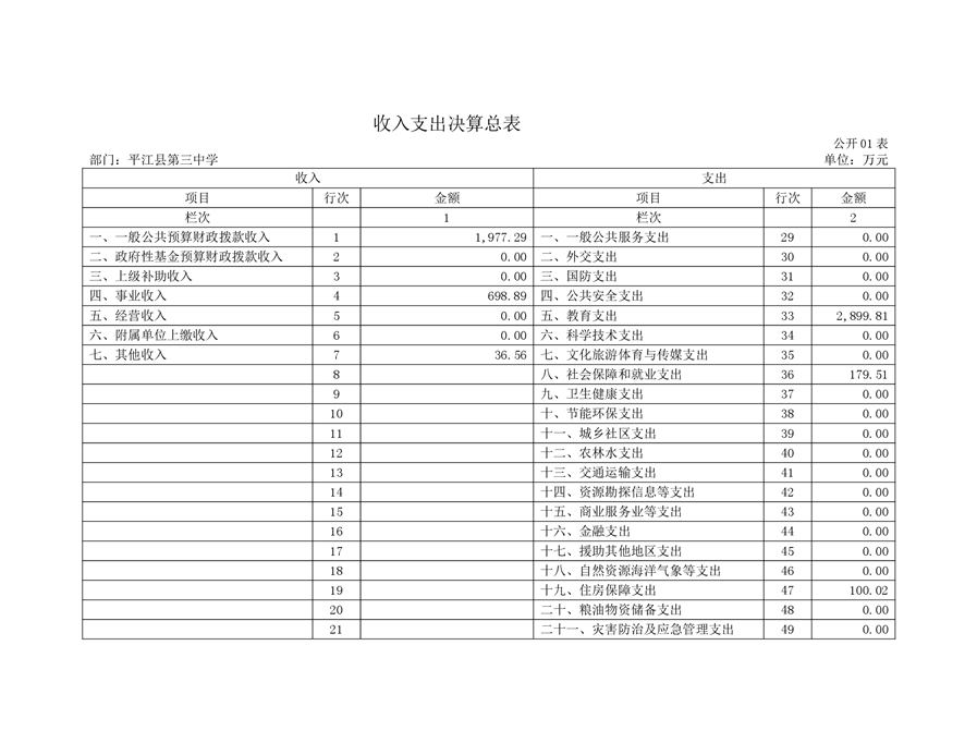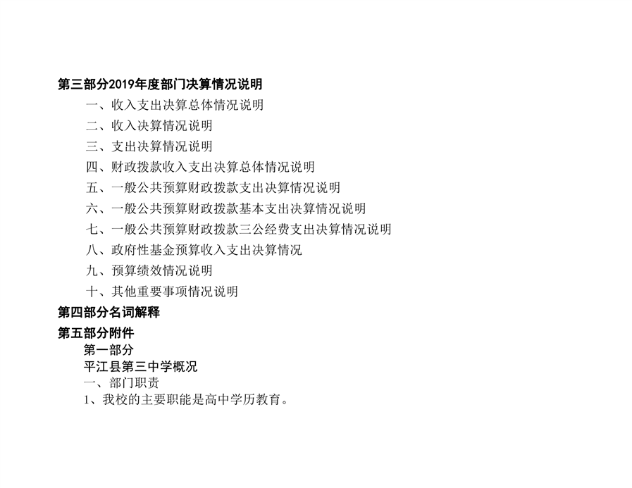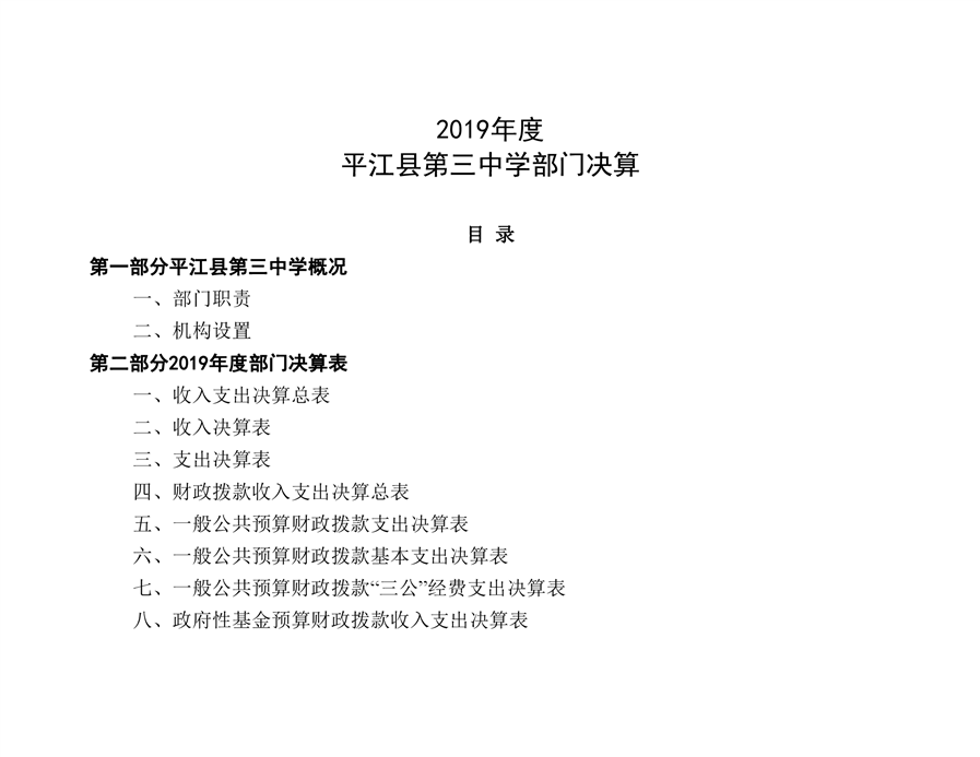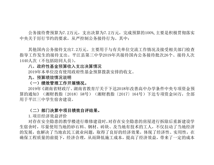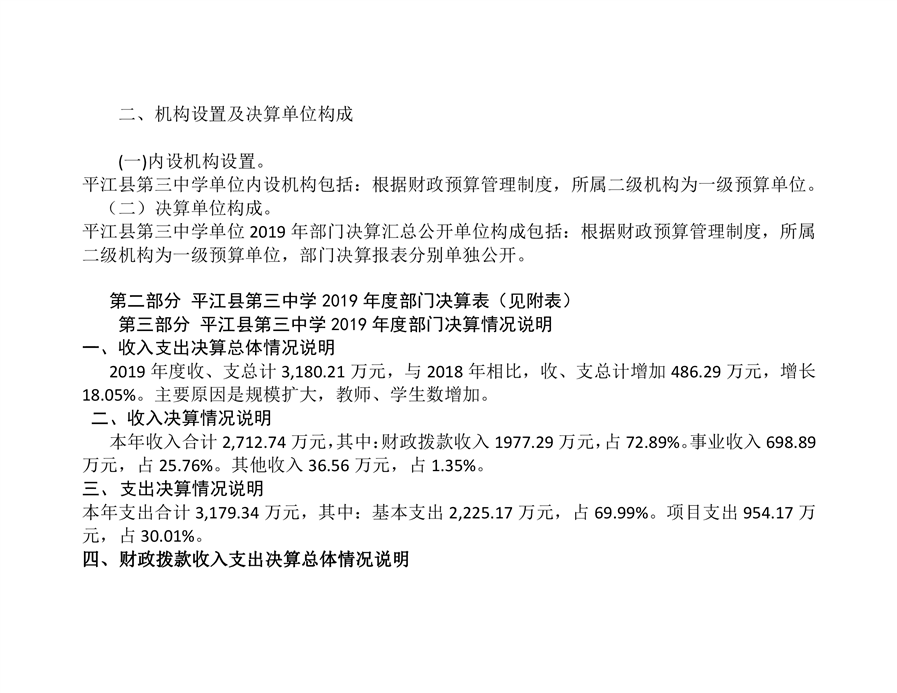 平江三中2019年部门决算说明