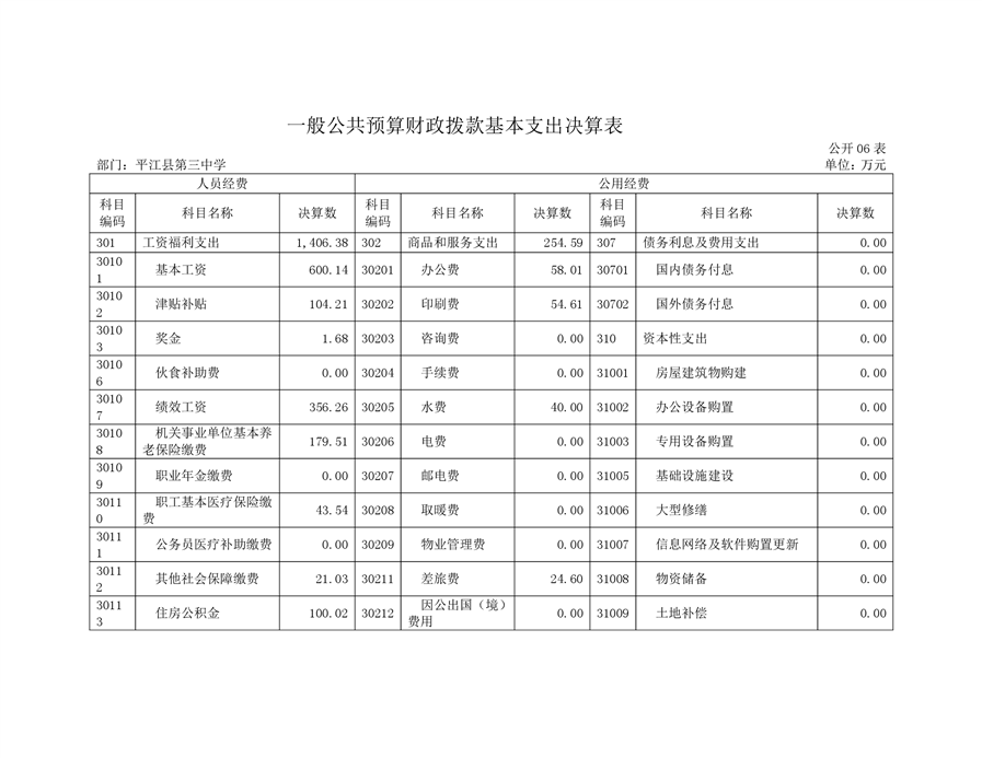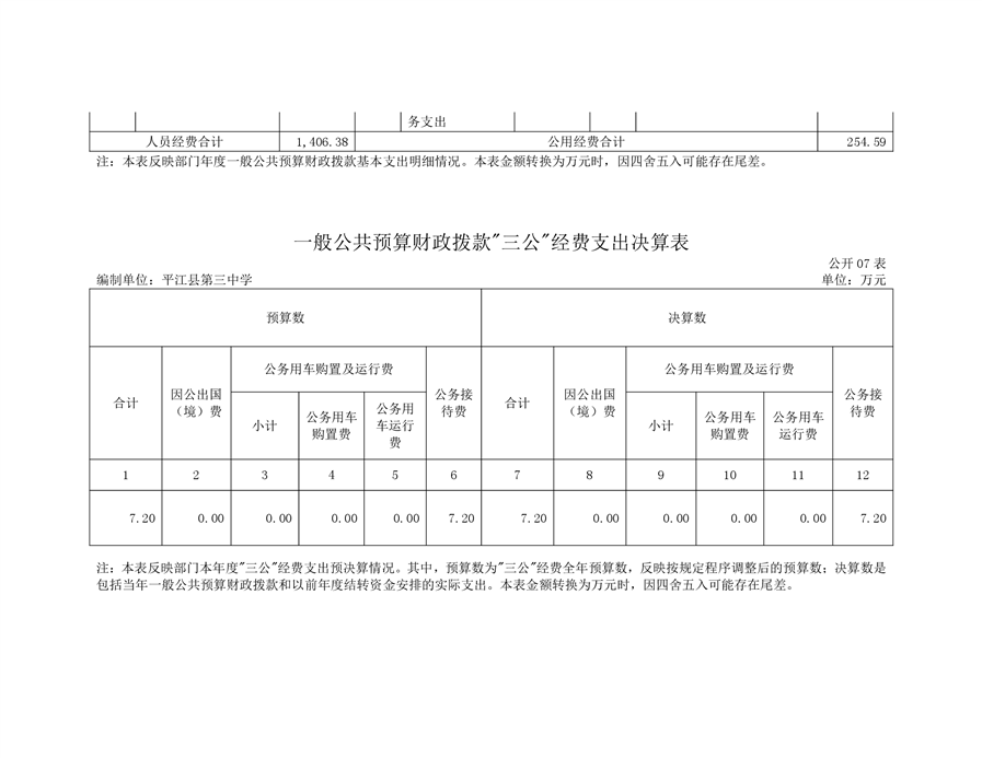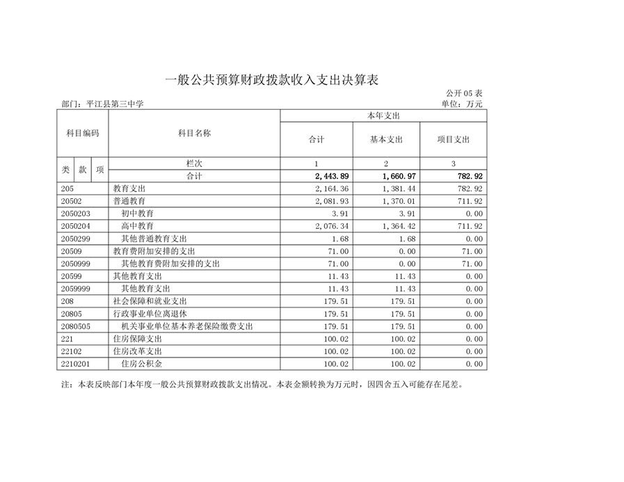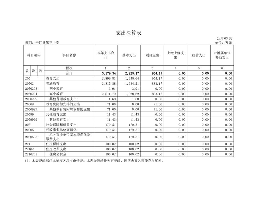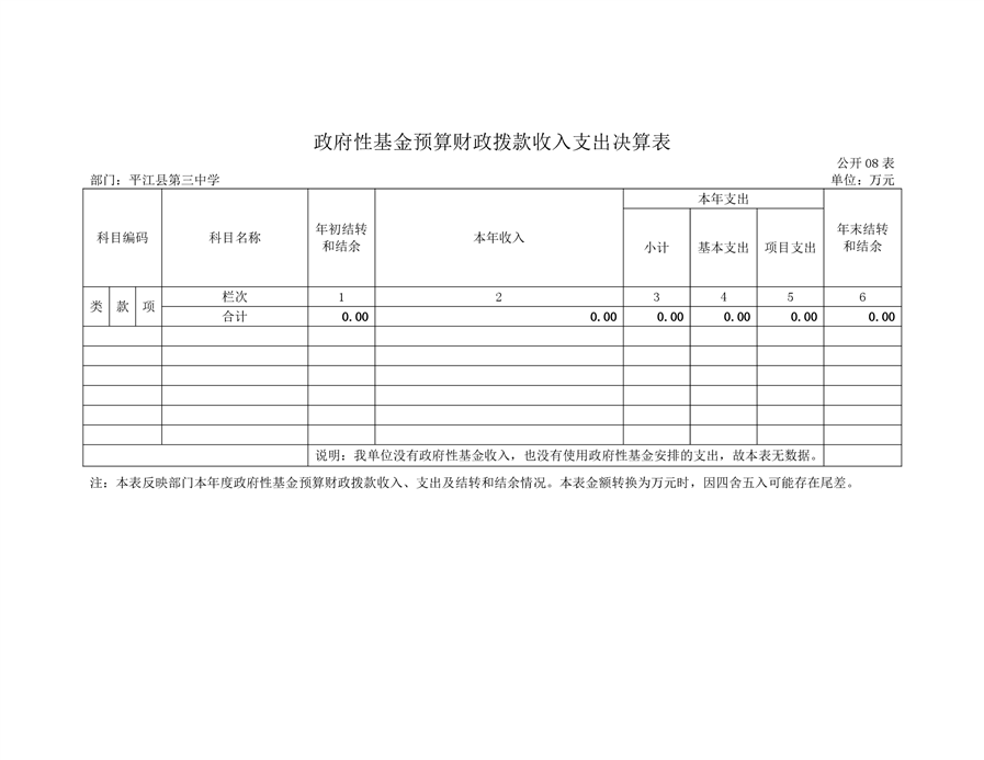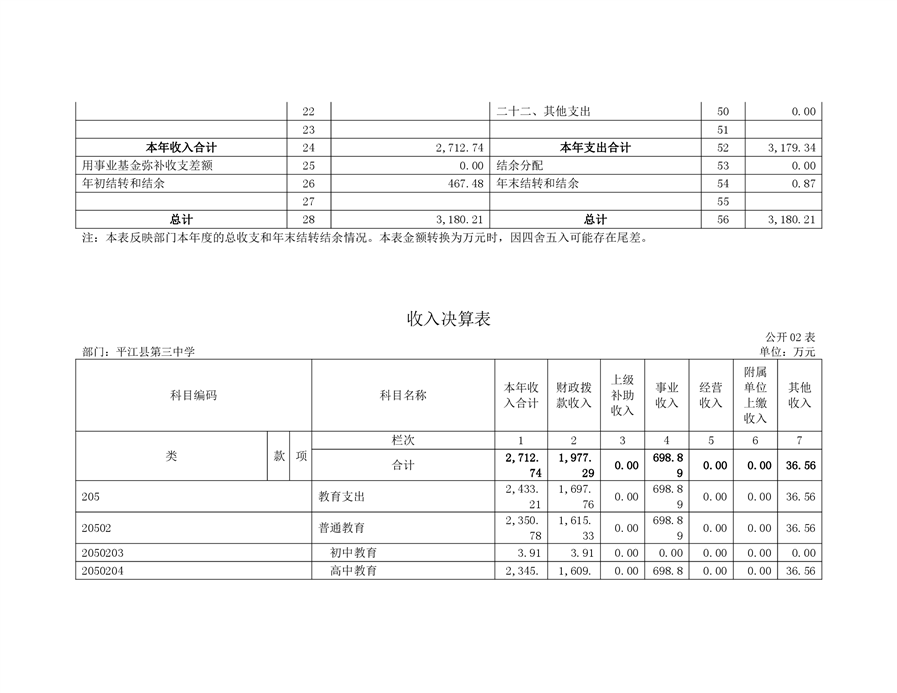 平江三中2019年部门决算说明