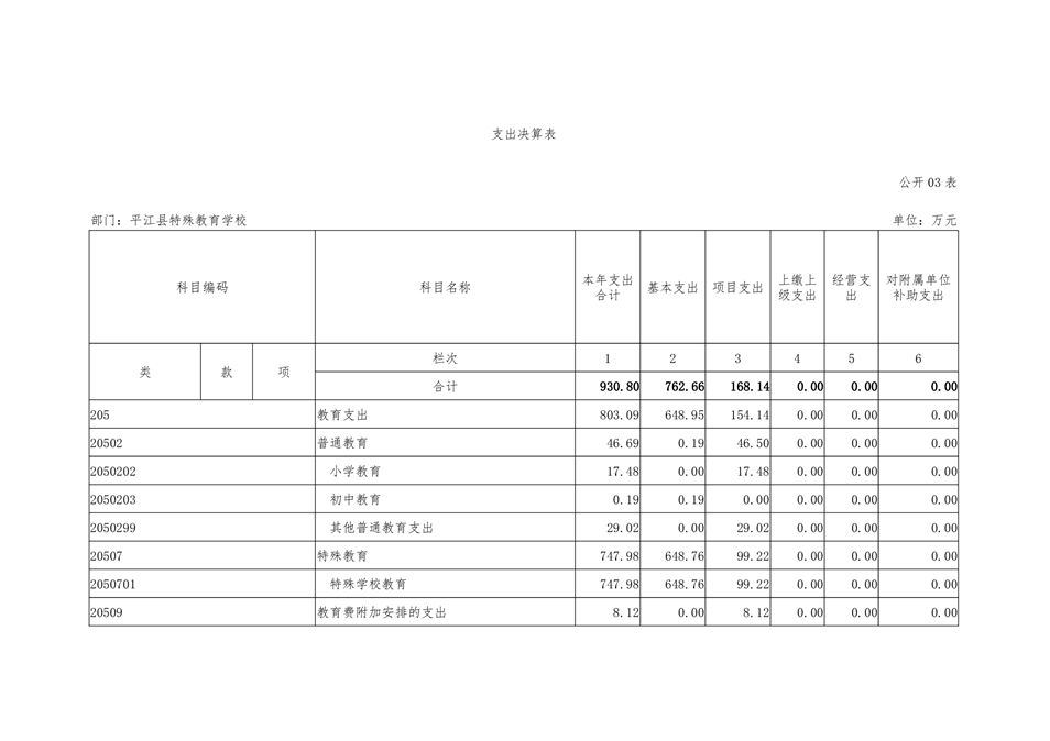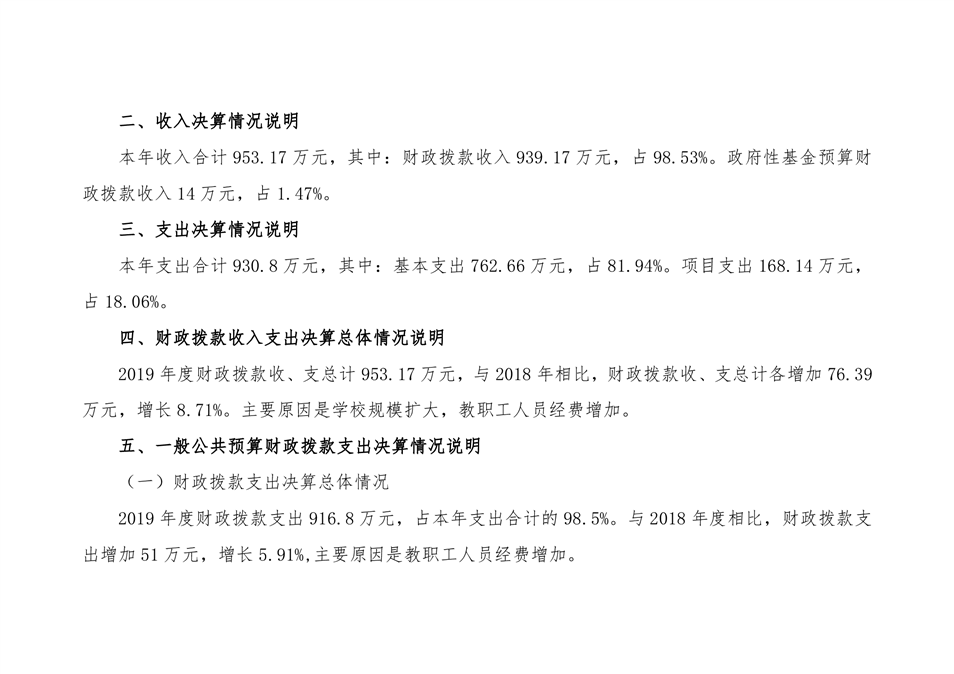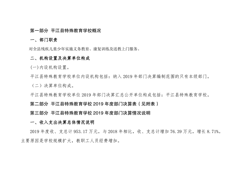 特教学校2019年部门决算说明