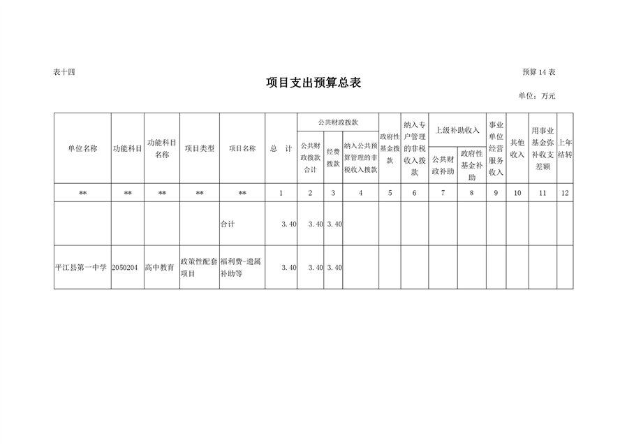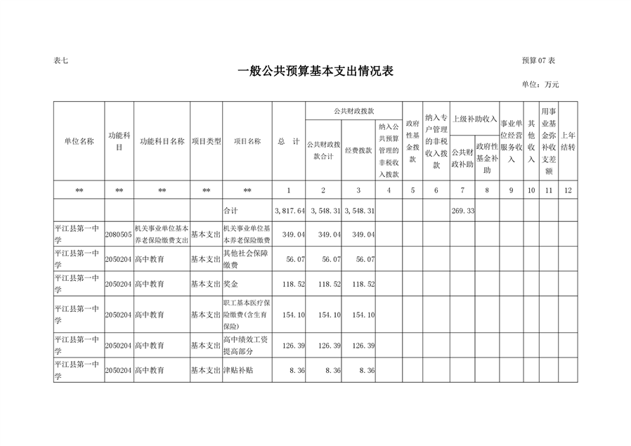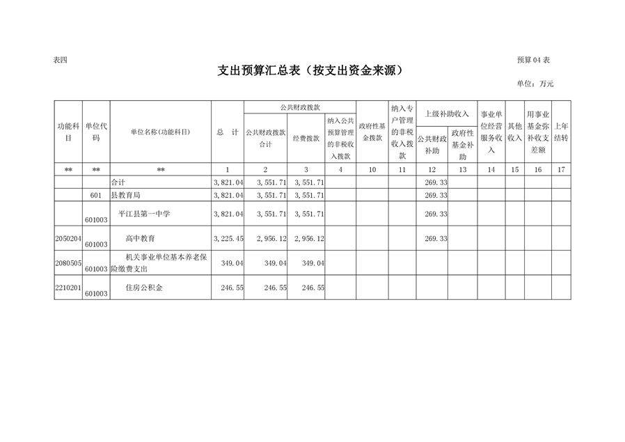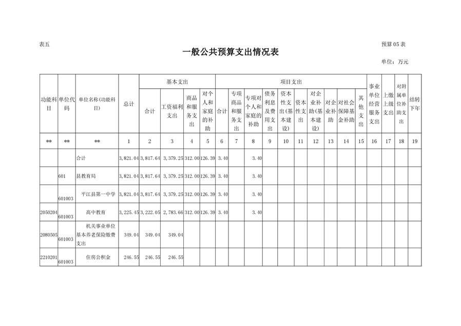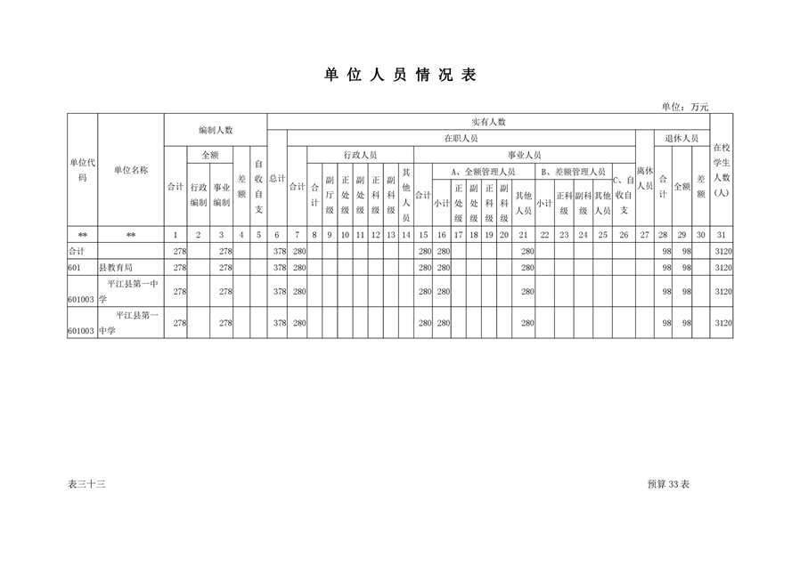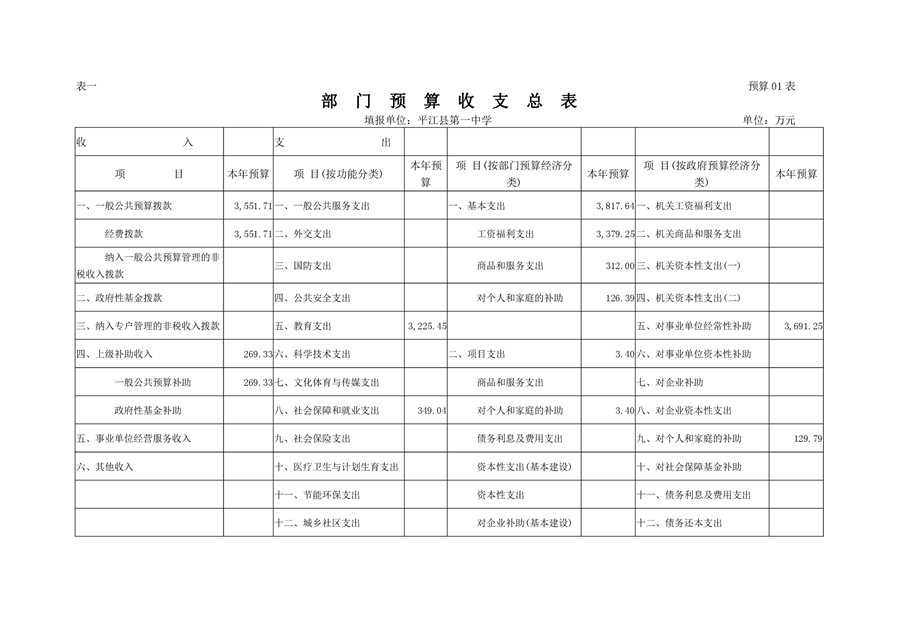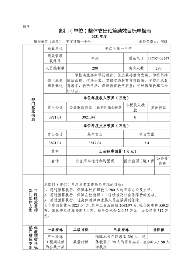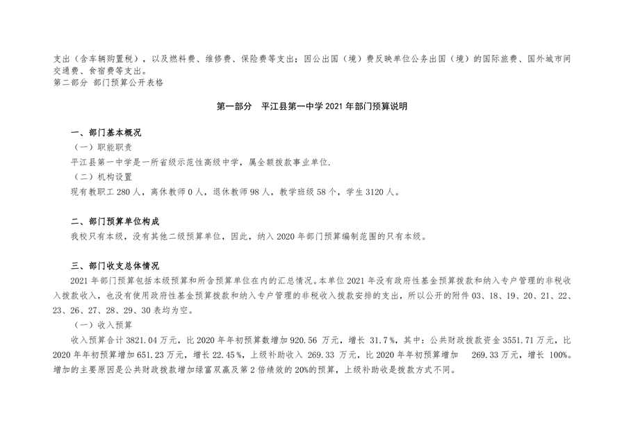 平江县第一中学2021年部门预算说明