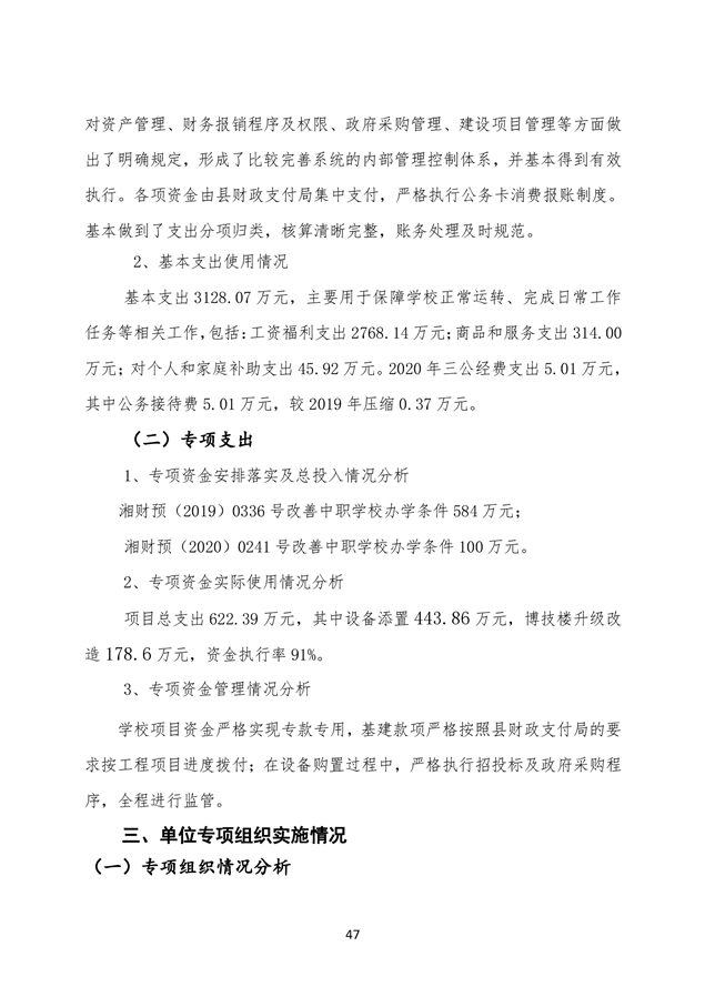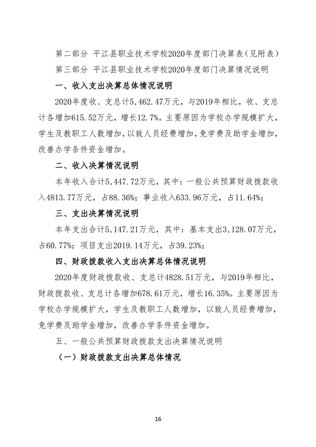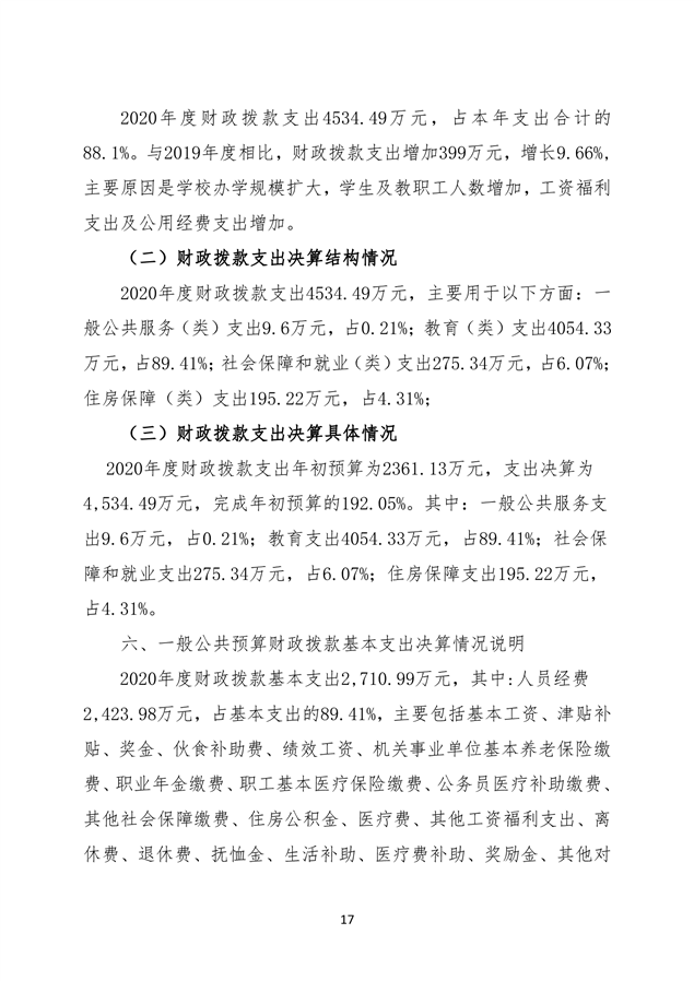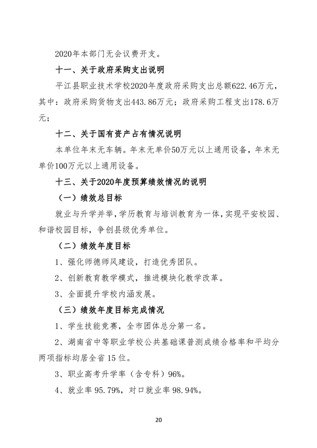 职业学校2020年部门决算说明