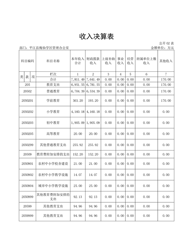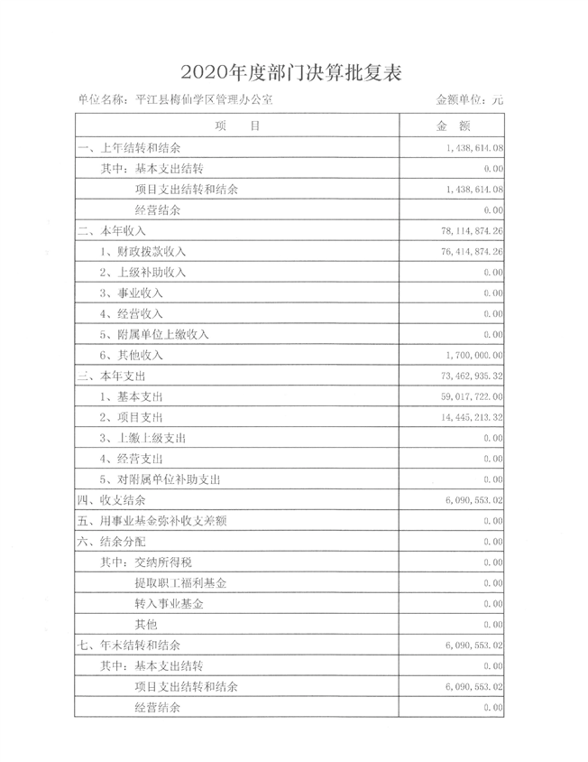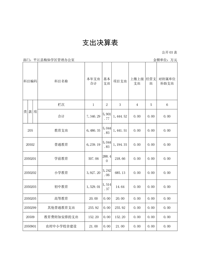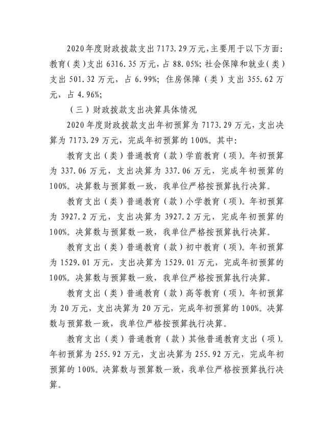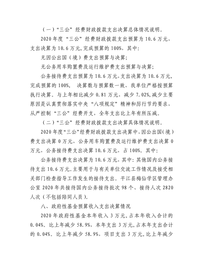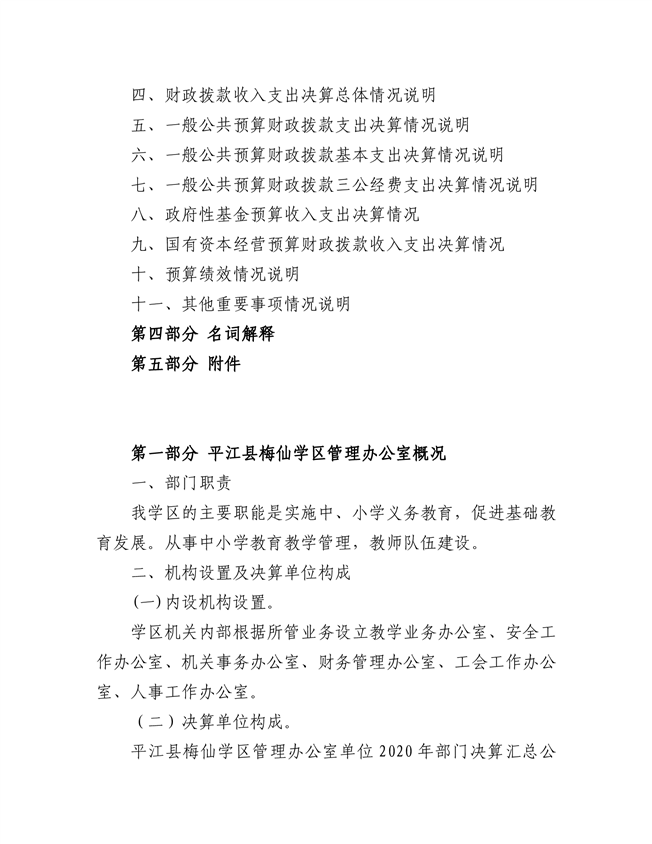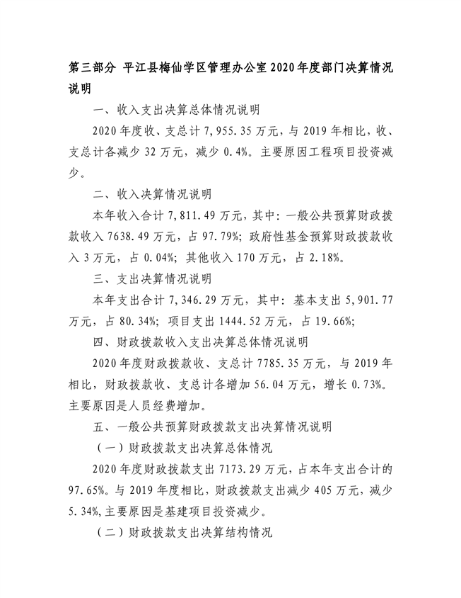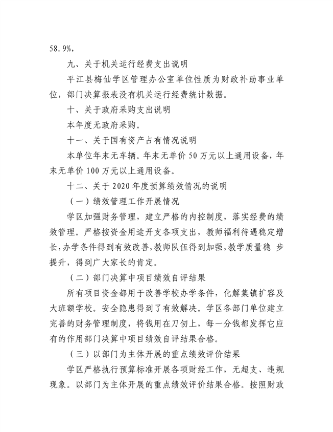 梅仙学区2020年部门决算说明