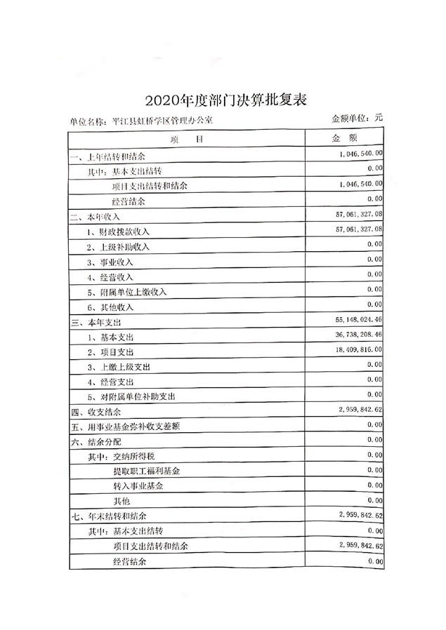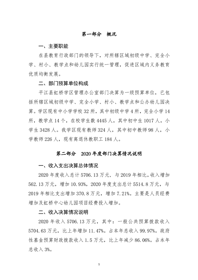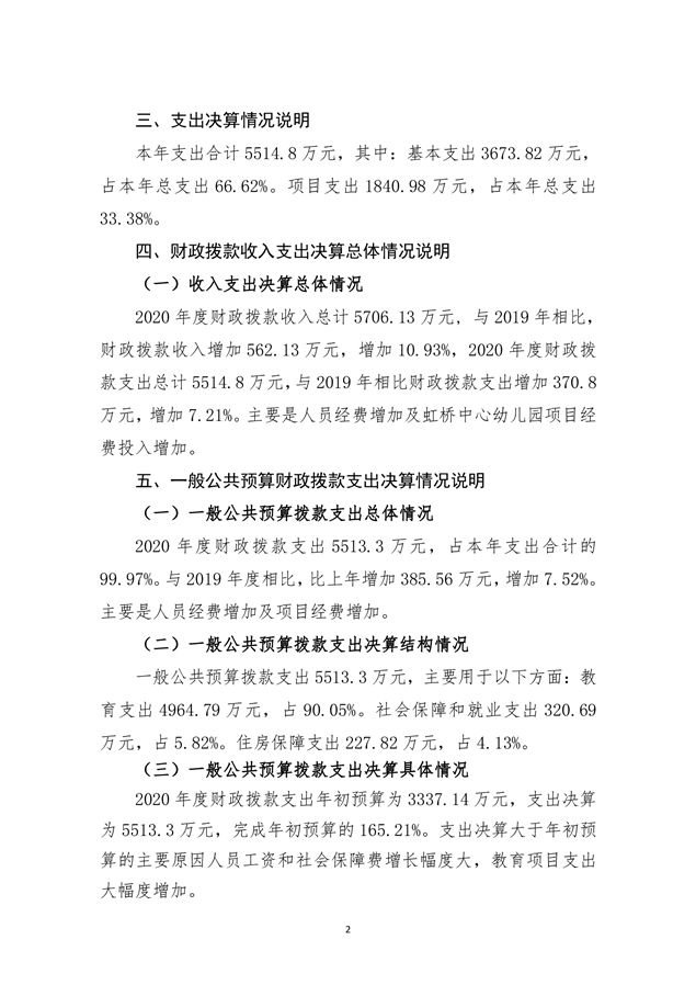 虹桥学区2020年部门决算说明