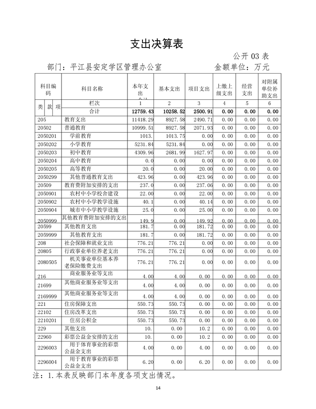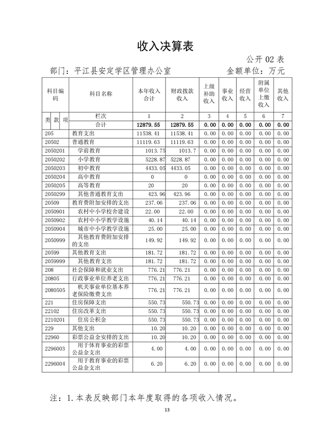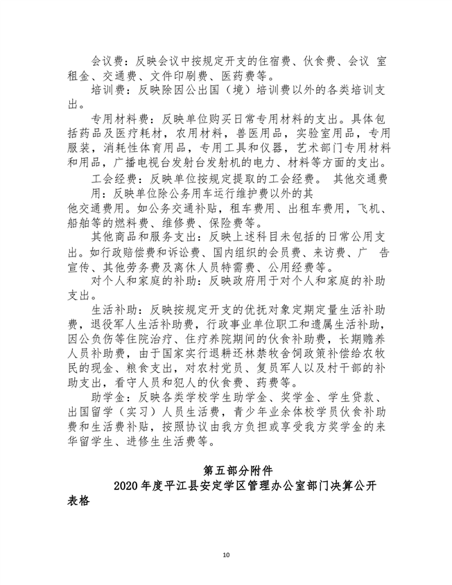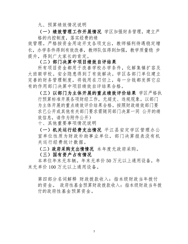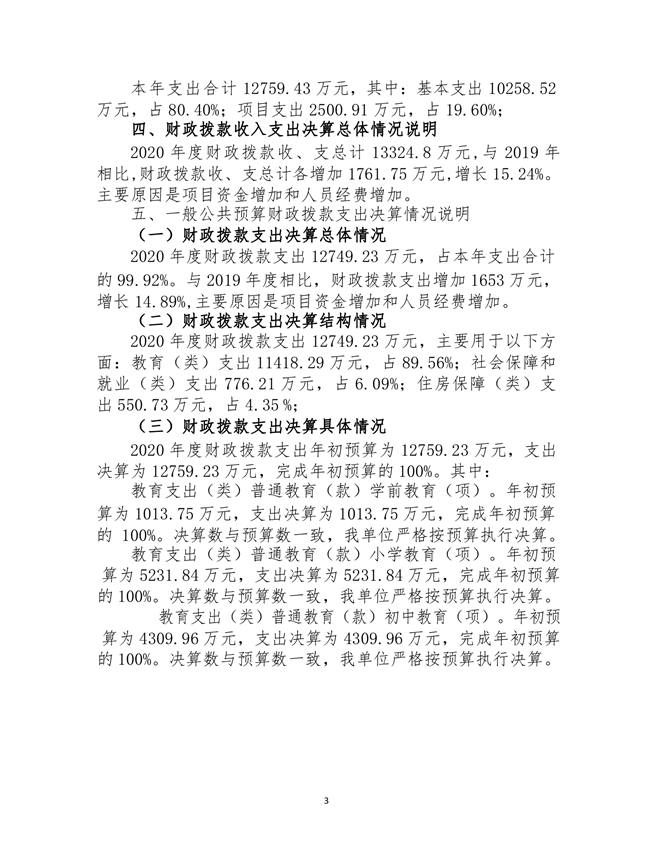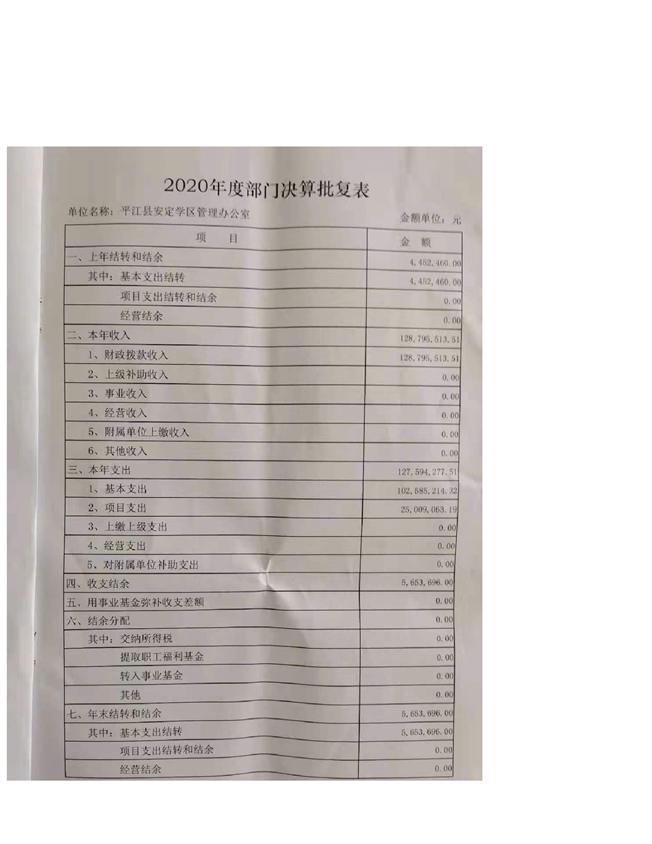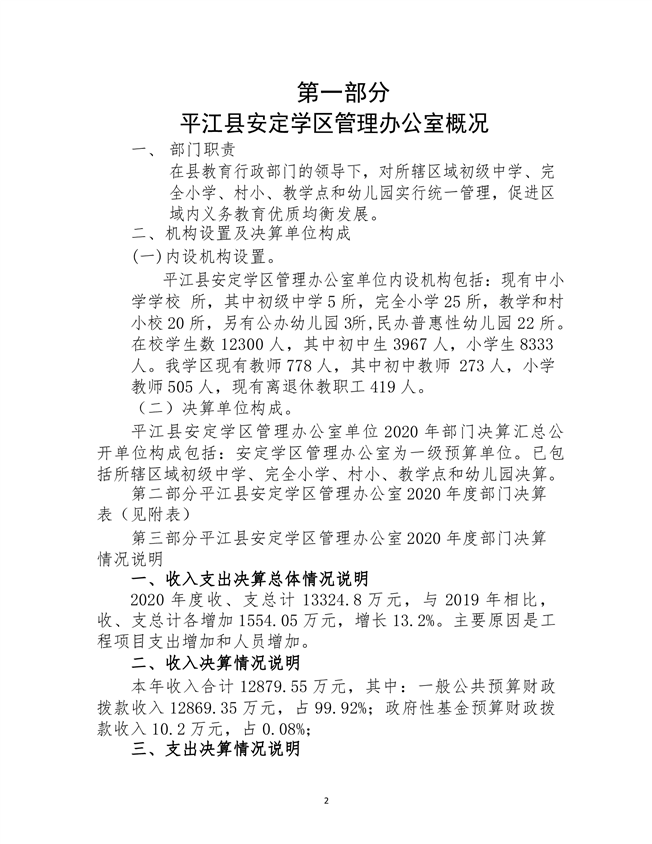 安定学区2020年部门决算说明