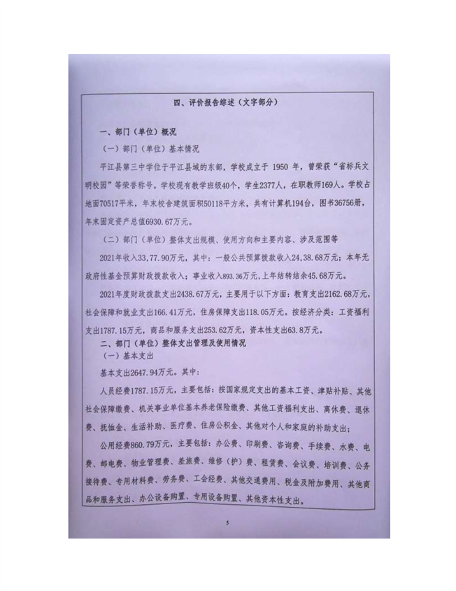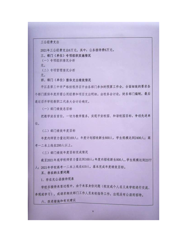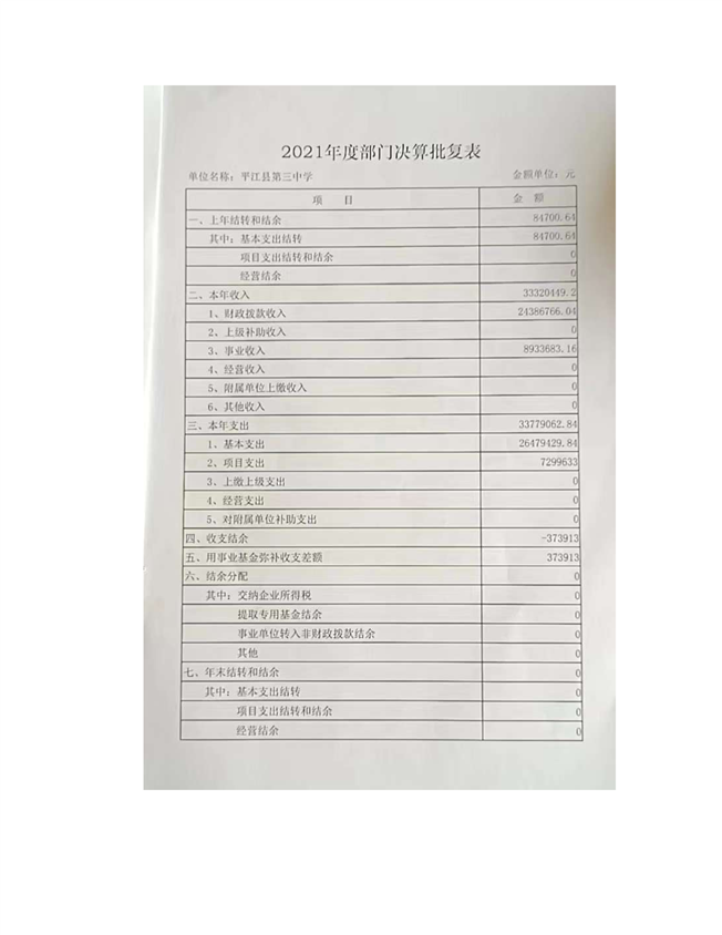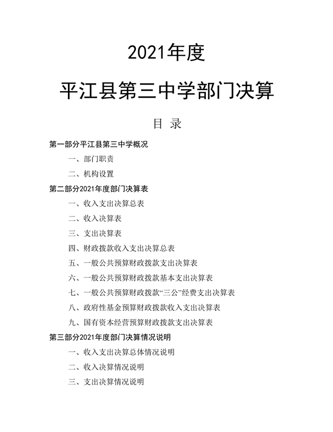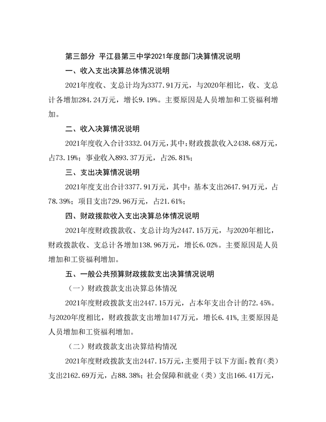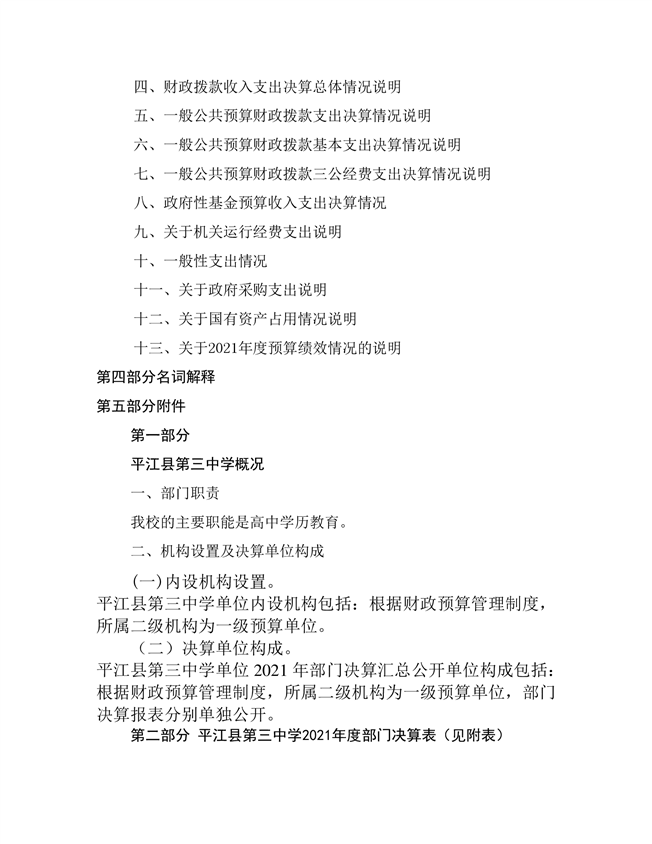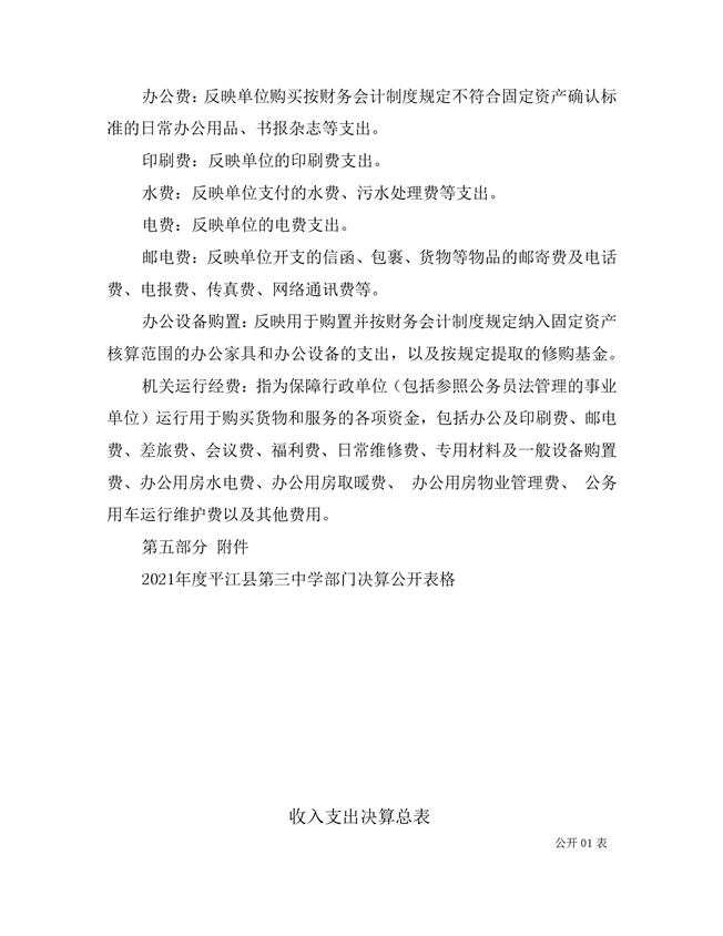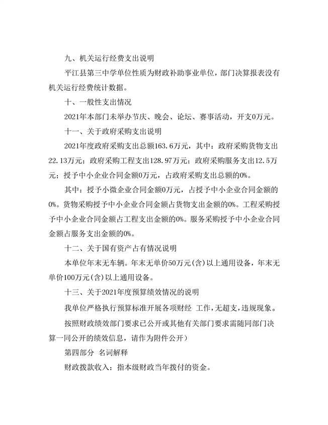 平江三中2021年部门决算说明