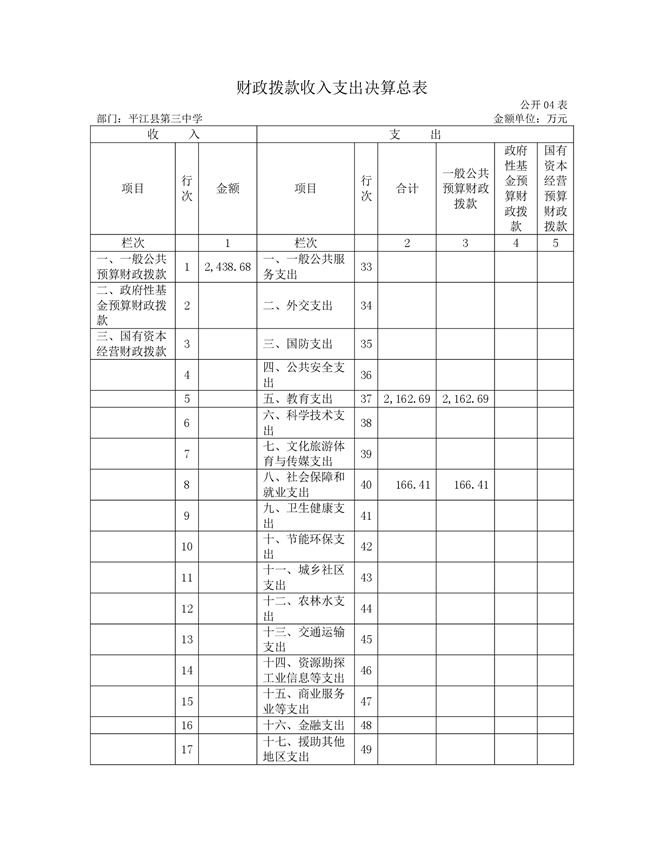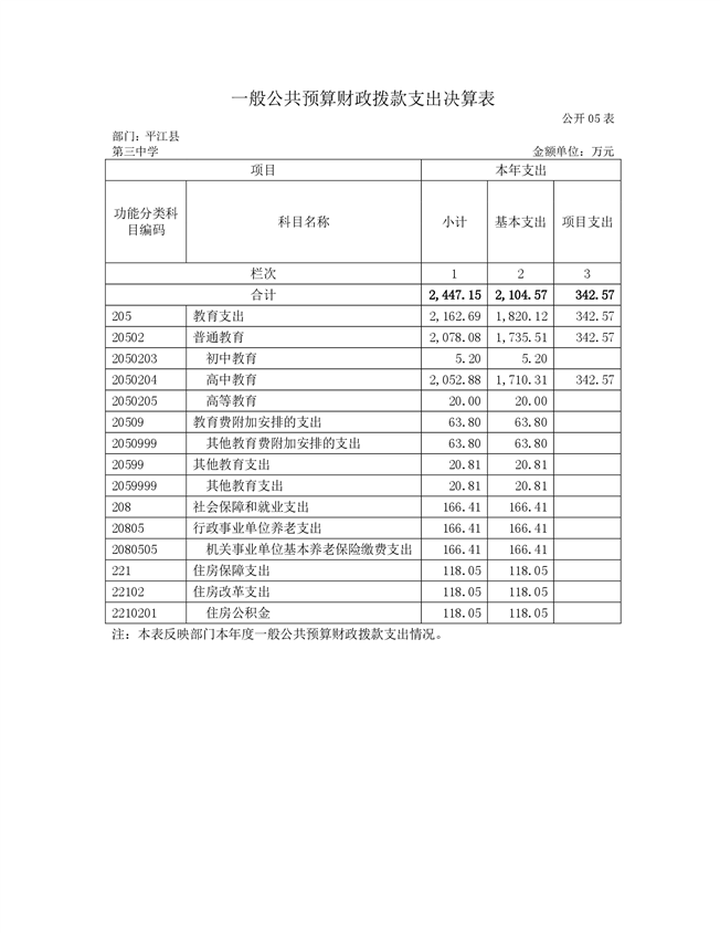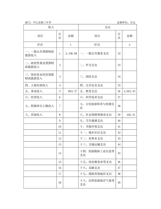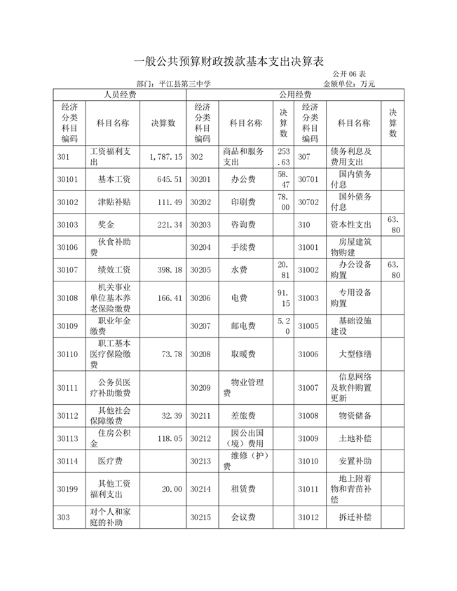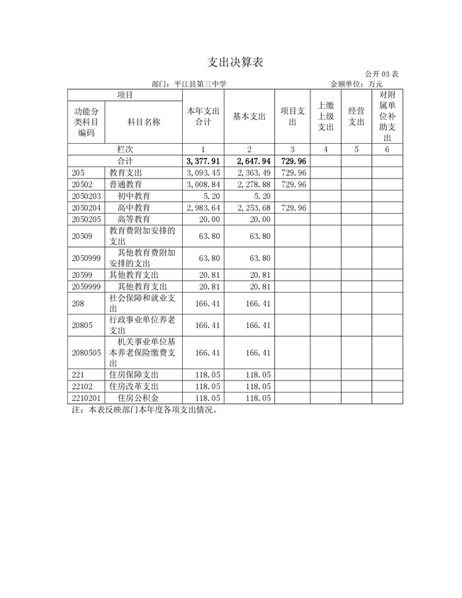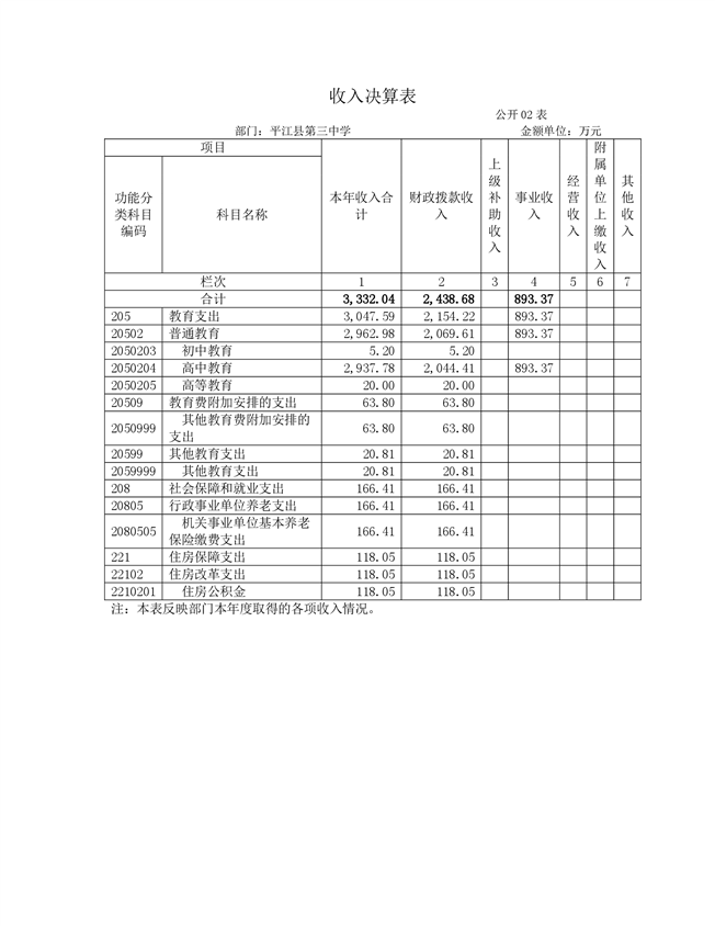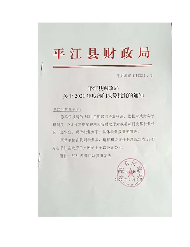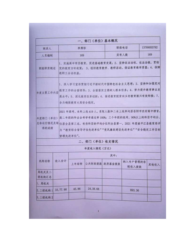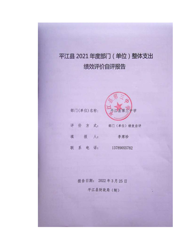 平江三中2021年部门决算说明
