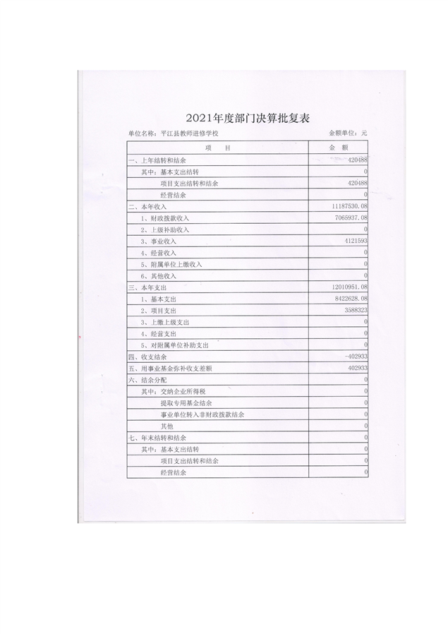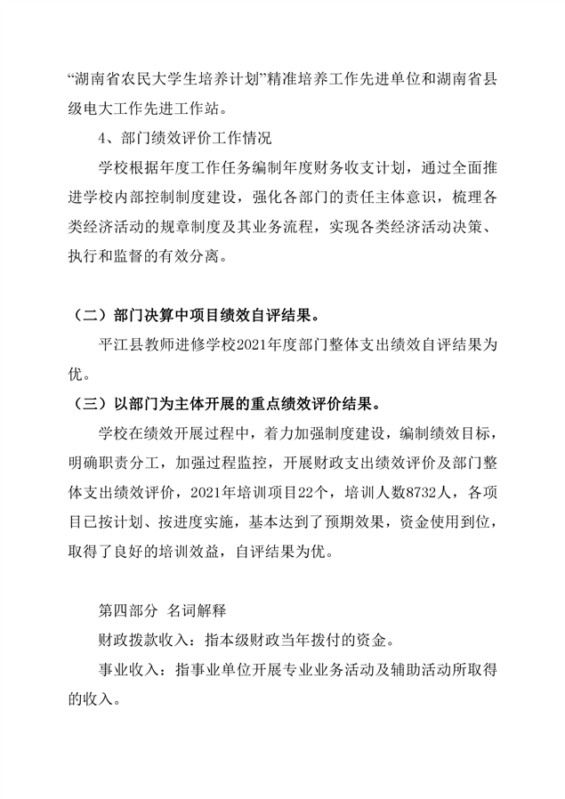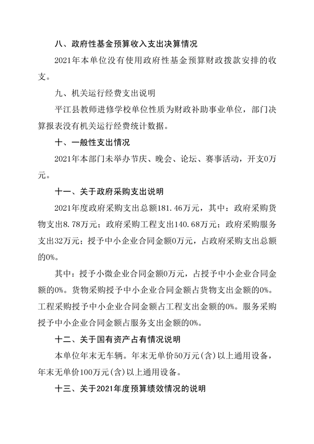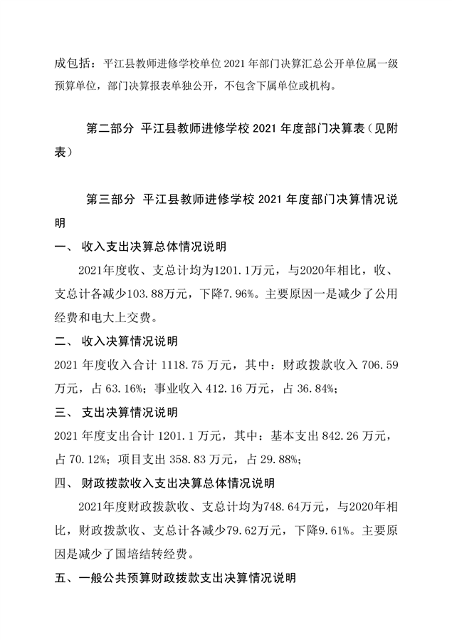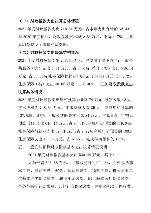 进修学校2021年部门决算说明