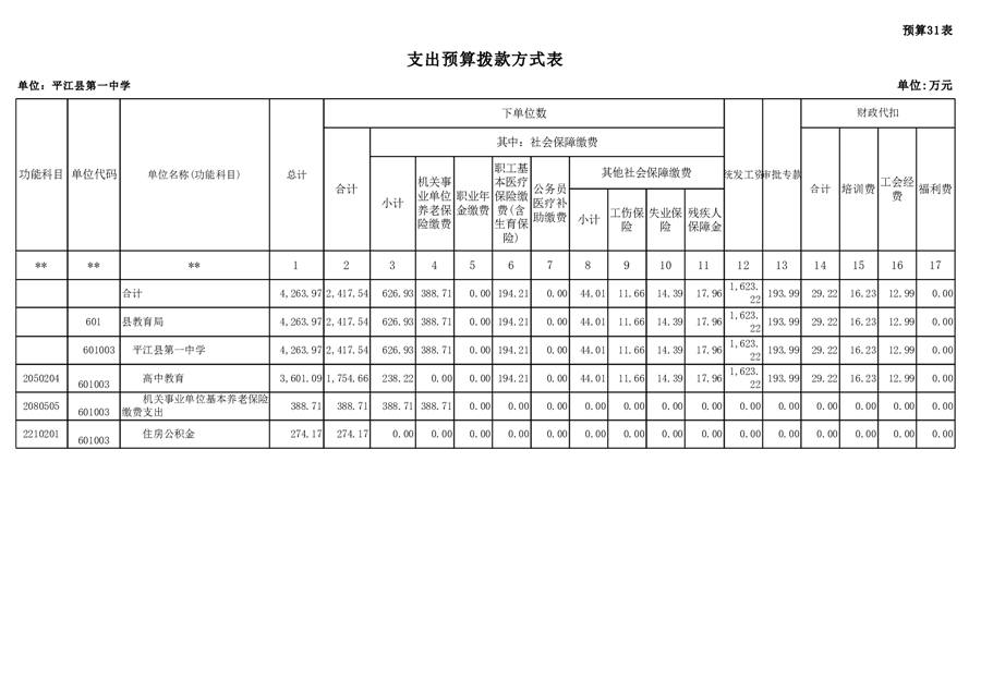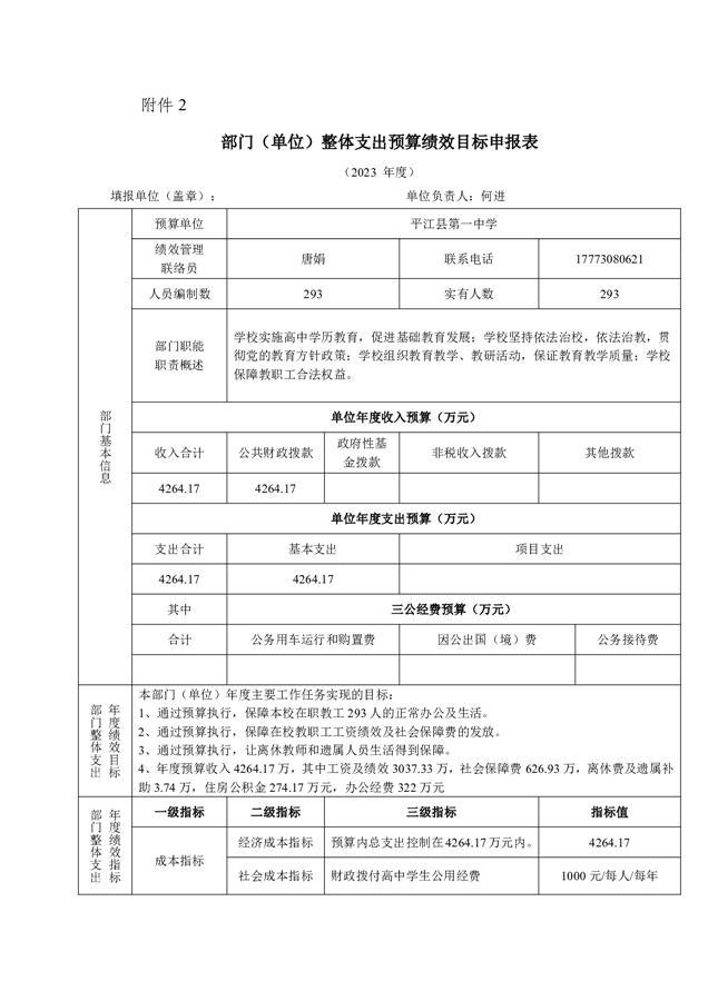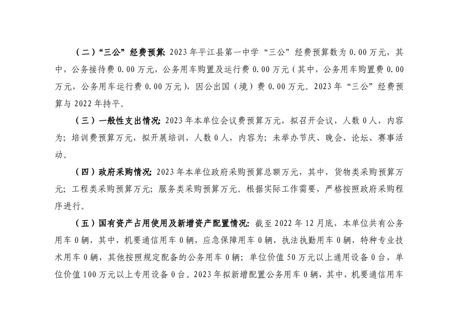 平江一中2023年部门预算编制说明