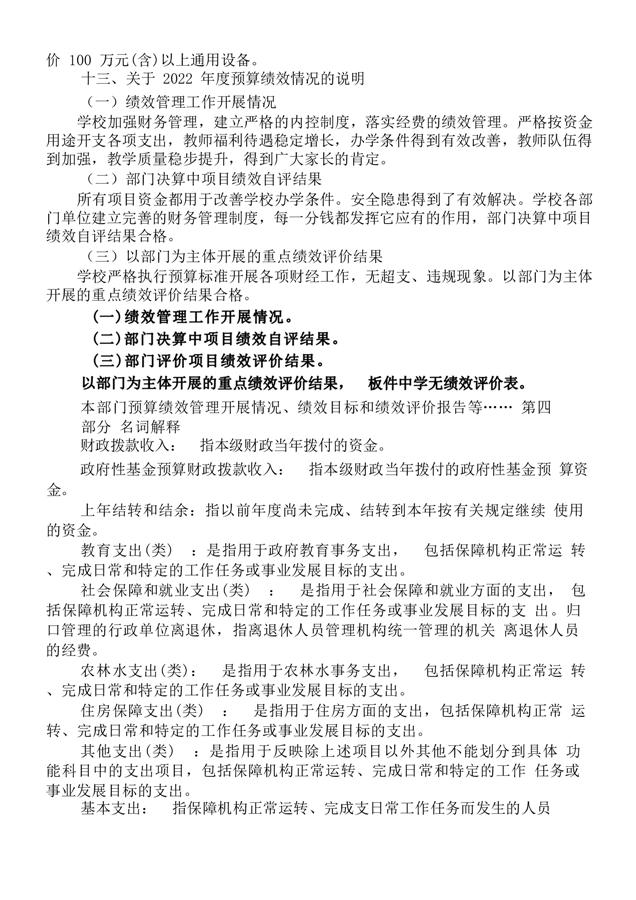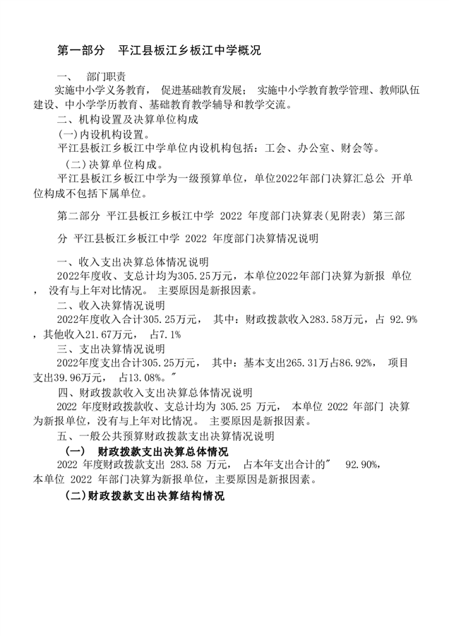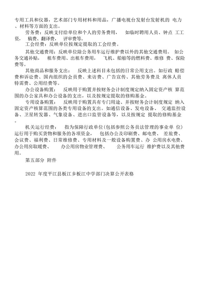 板江中学2022年部门决算说明