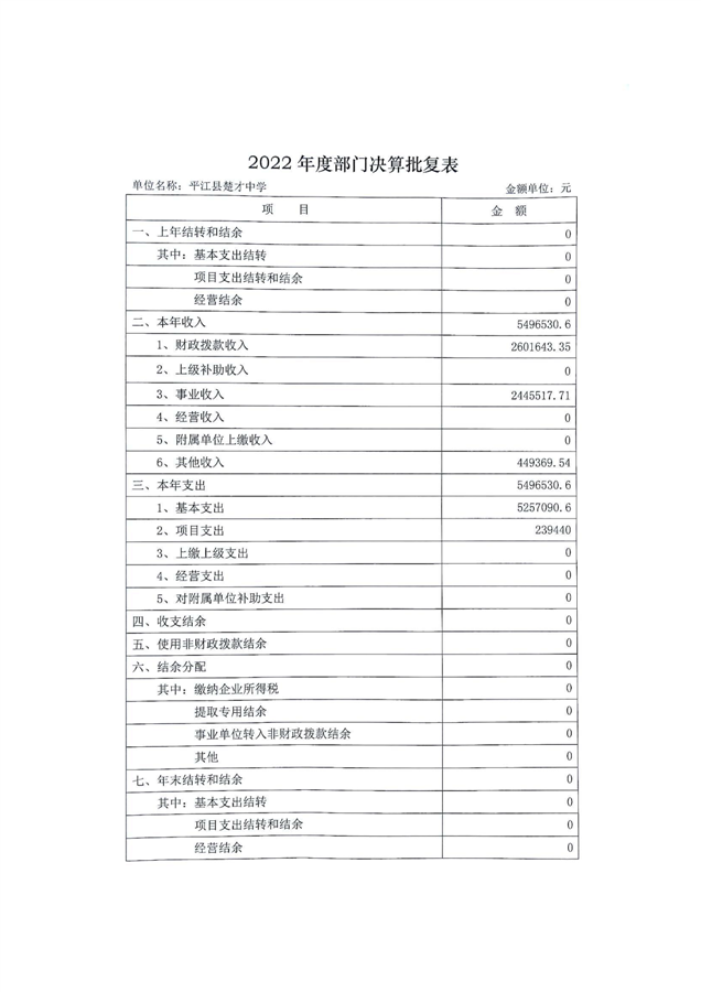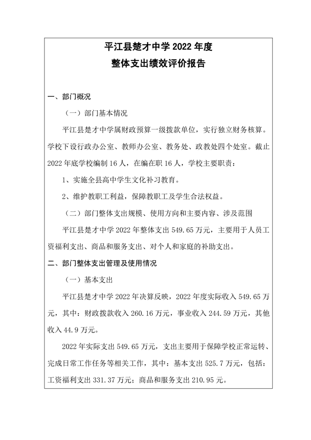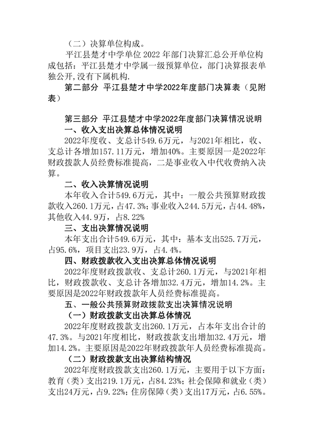 楚才中学2022年部门决算说明