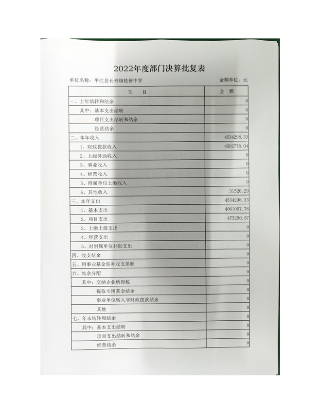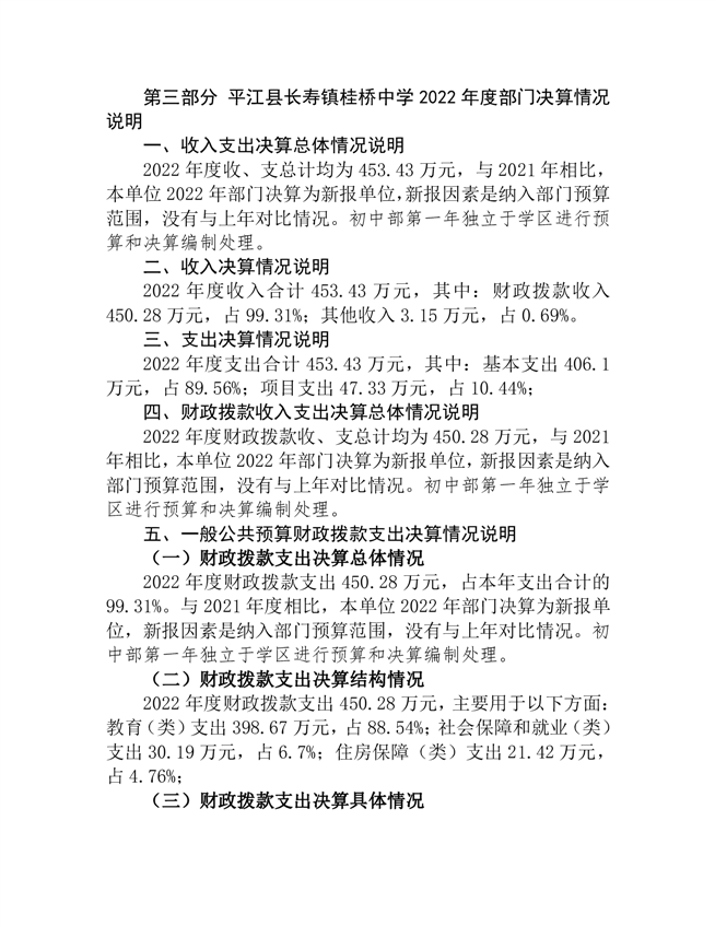 桂桥中学2022年部门决算说明