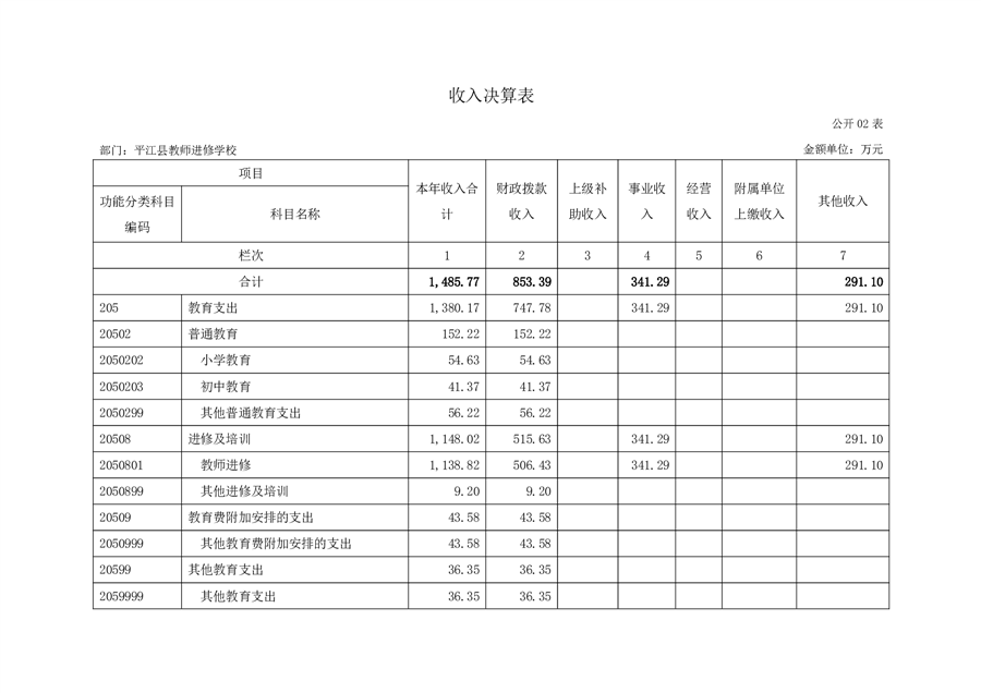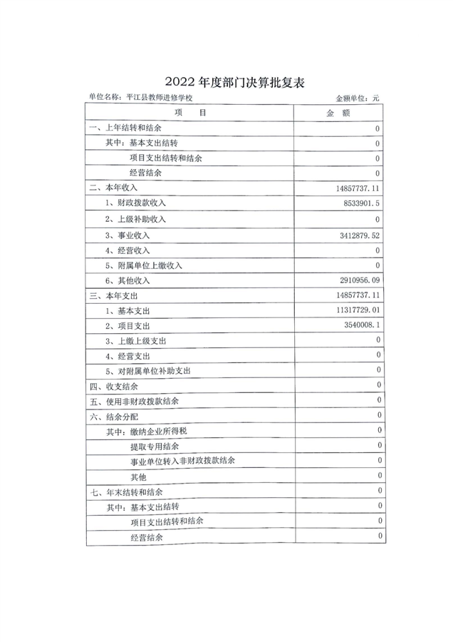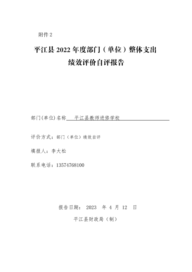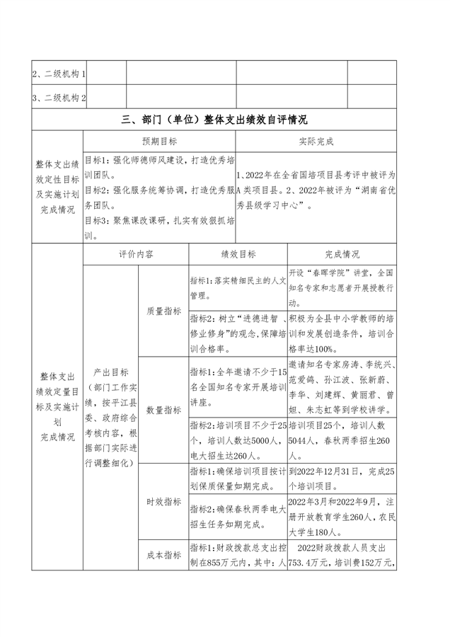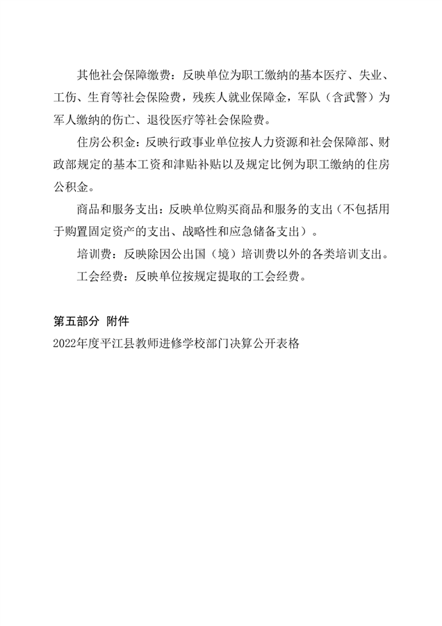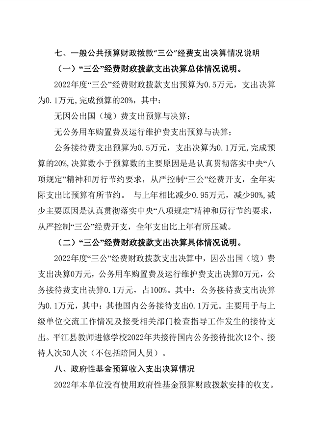平江县进修学校2022年部门决算说明