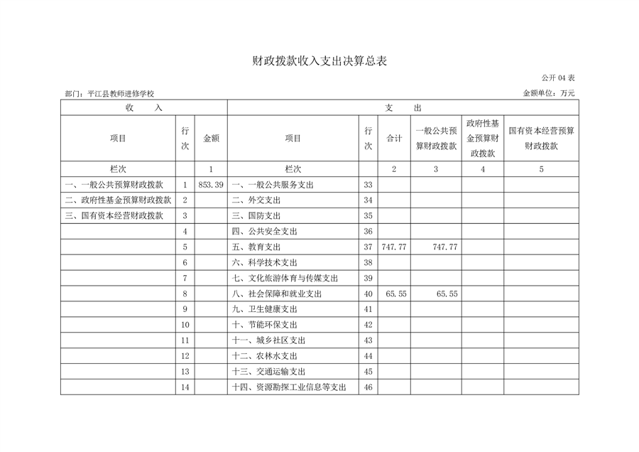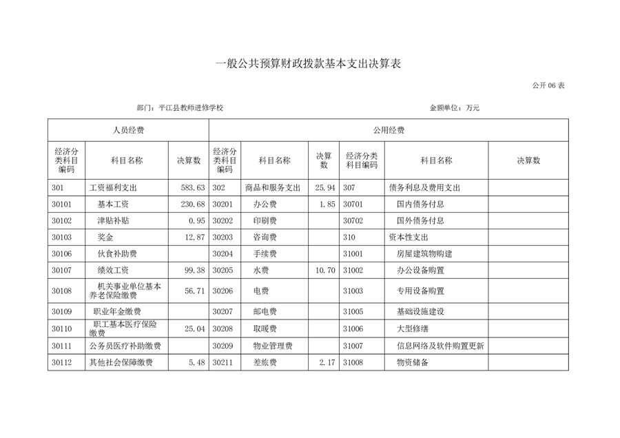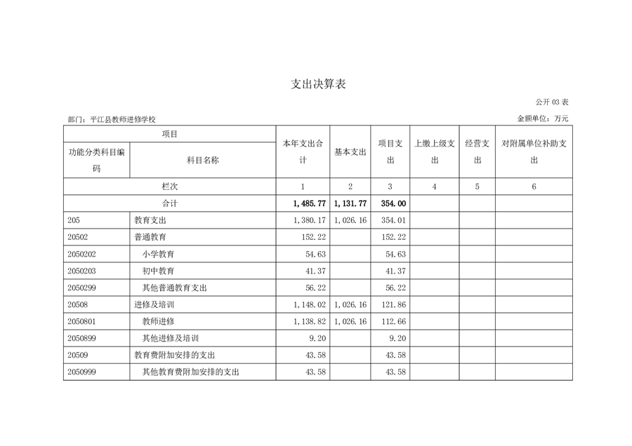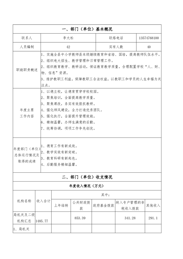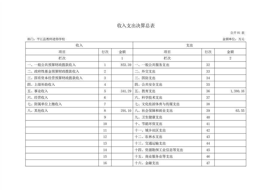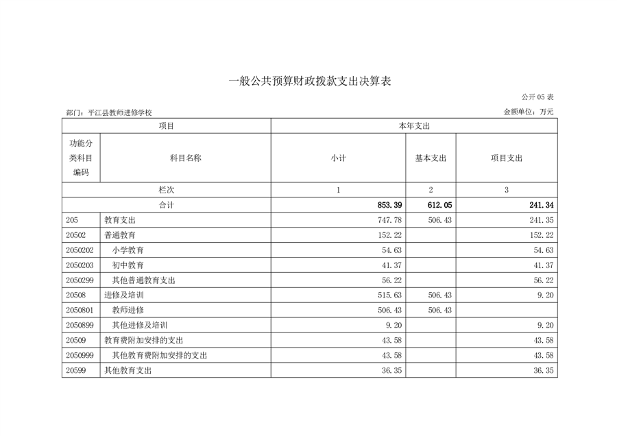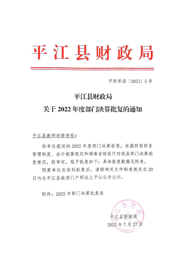 平江县进修学校2022年部门决算说明