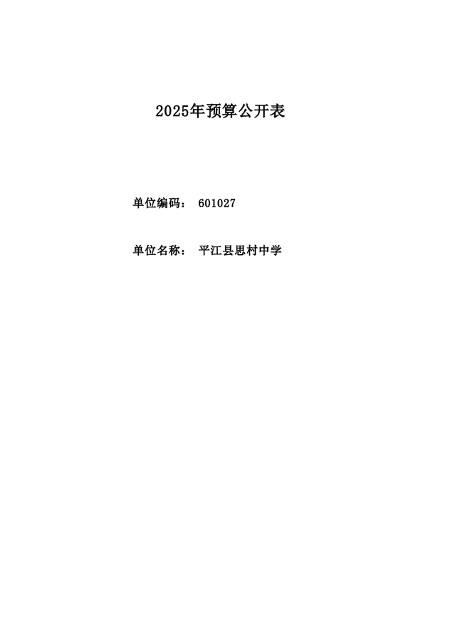 平江县思村中学2025年部门预算公开