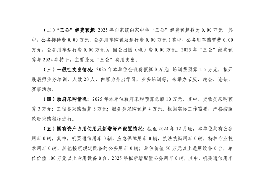 平江县向家中学2025年部门预算公开