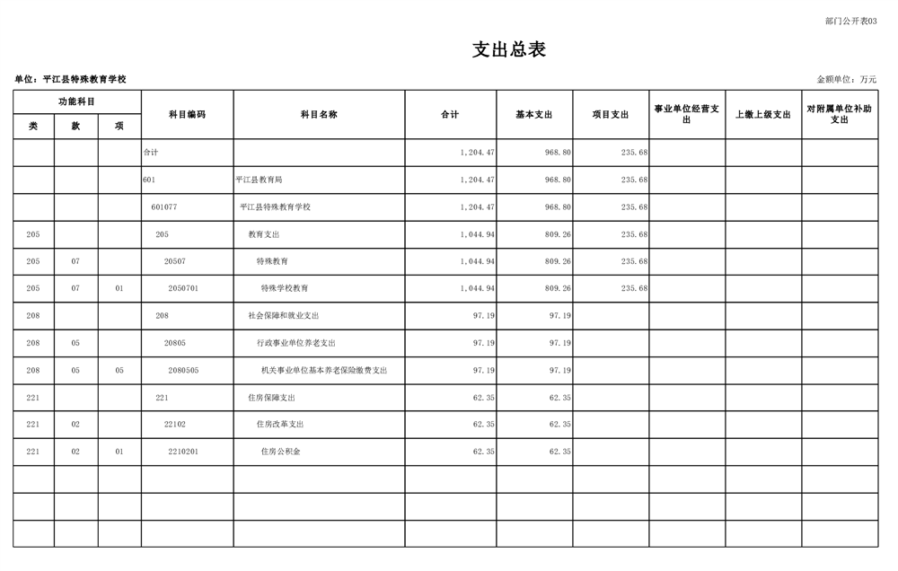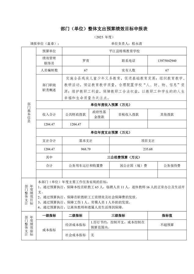 平江县特殊教育学校2025年部门预算公开
