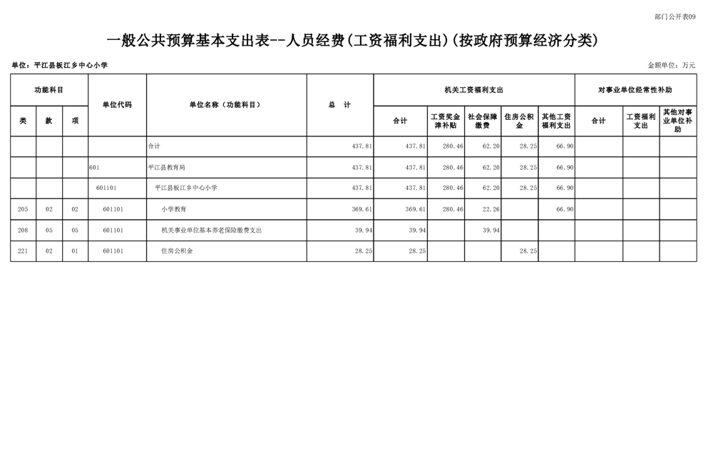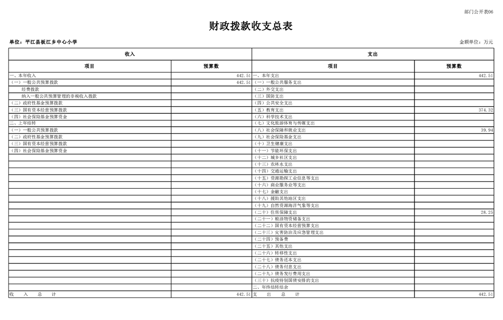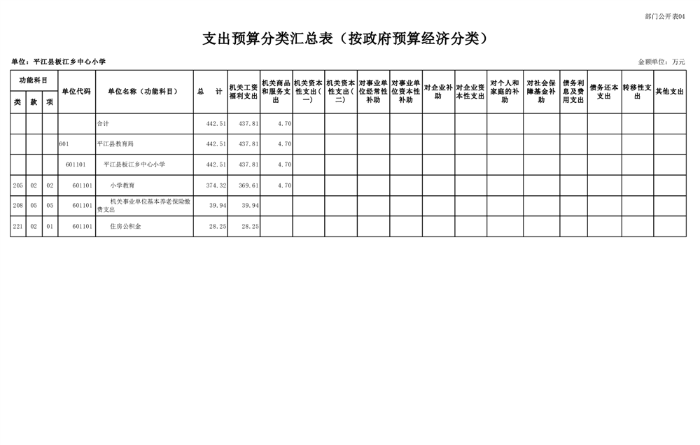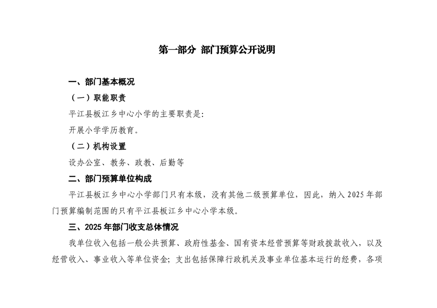 平江县板江乡中心小学2025年部门预算公开